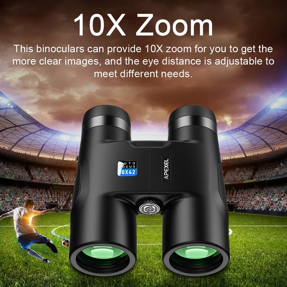 Портативный бинокль с автофокусом, объектив 10X 42 мм, регулируемые телескопы, подходят для игры в Мячи