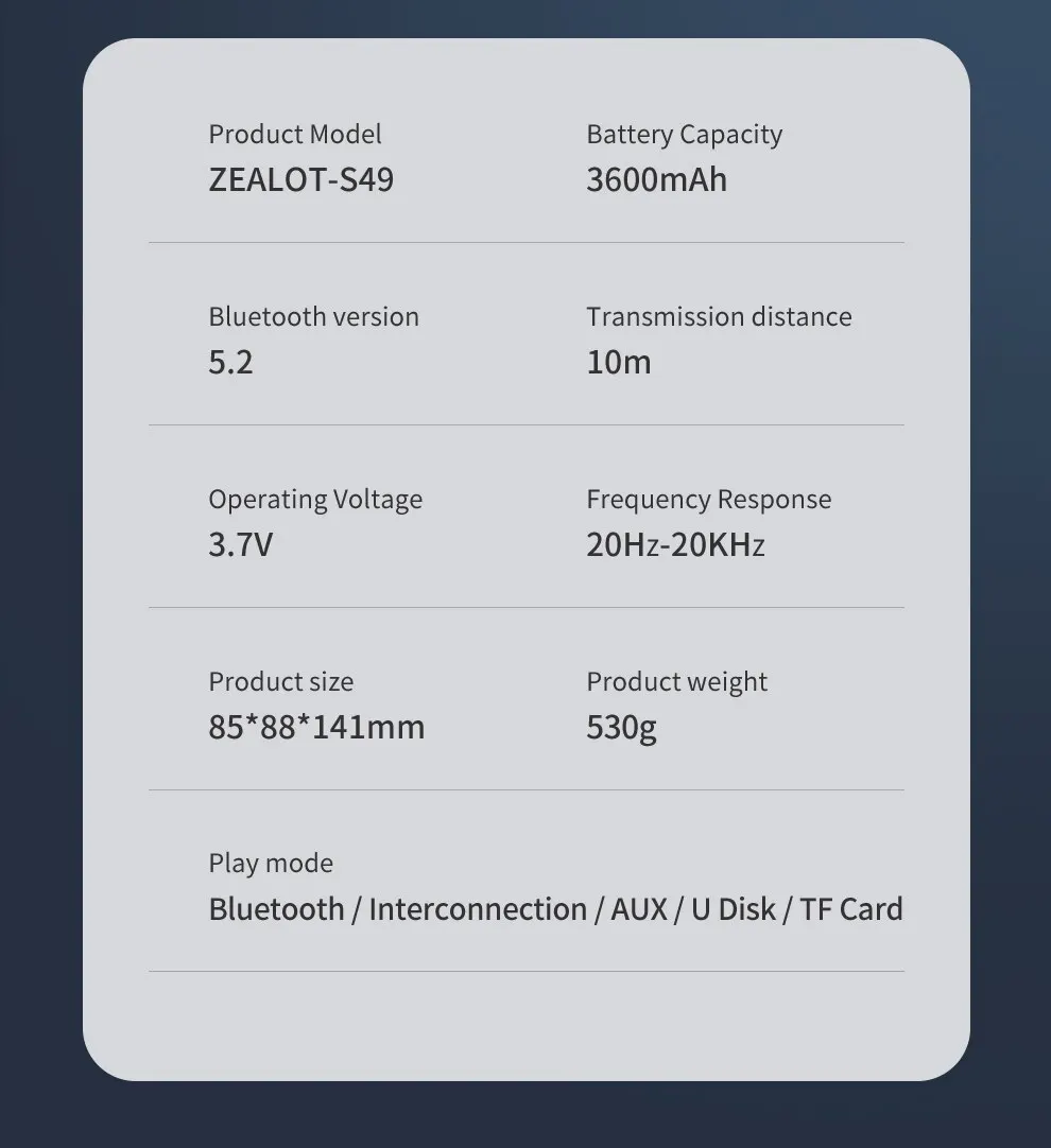 1x Bluetooth-динамик ZEALOT S49