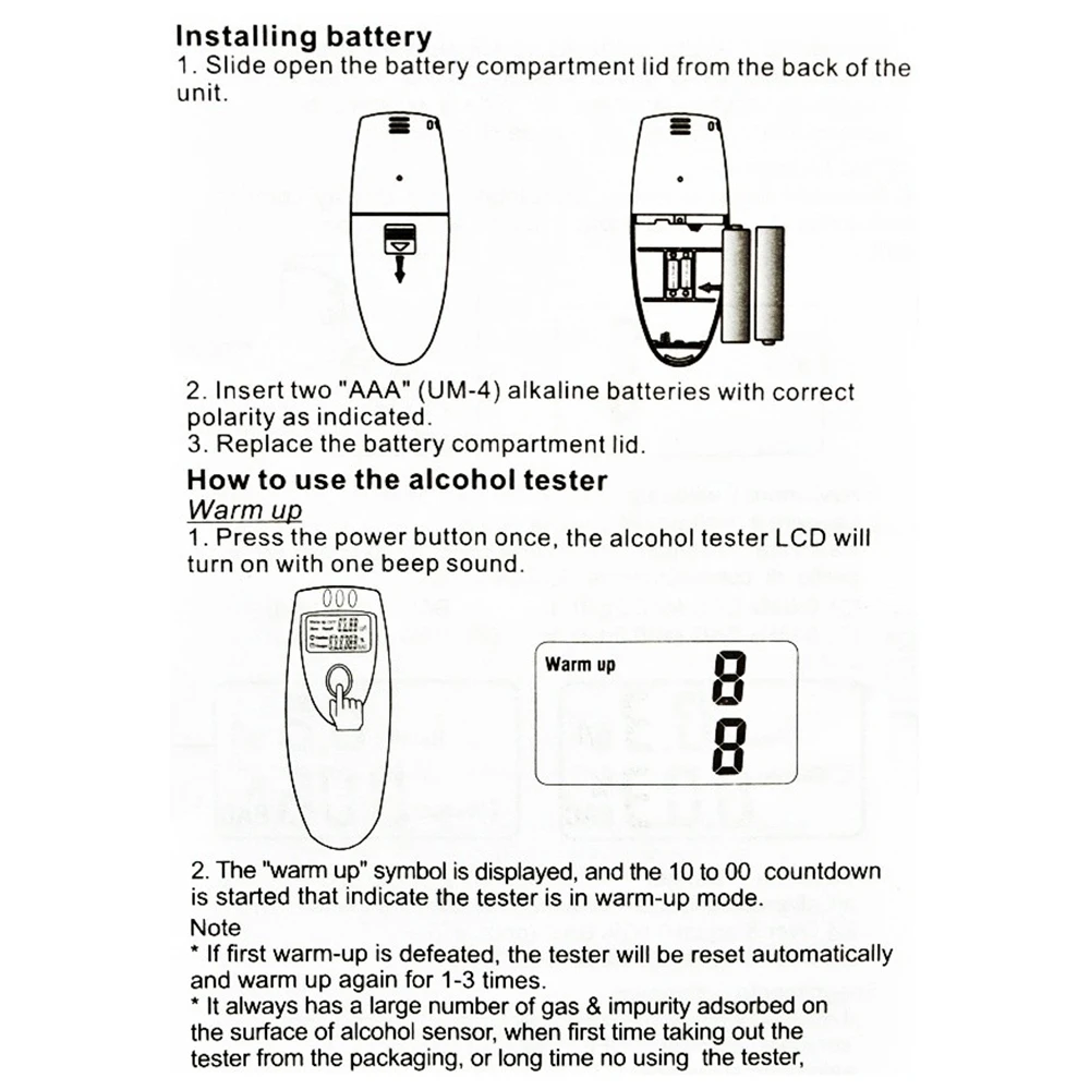 • Диапазон обнаружения: 0,00-0.19% BAC/0,0-1,9g/L