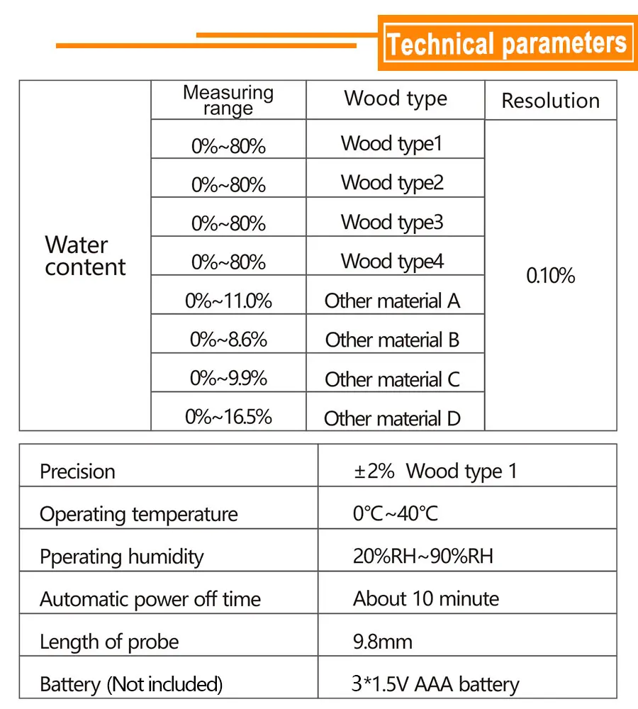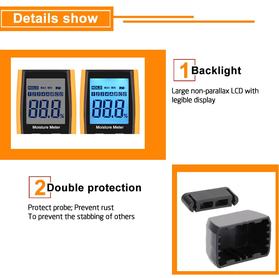 Продукт в основном представляет собой новый мини-молекулярный тестер воды по дереву. Может использоваться для проверки влажности цемента, влажности бетона, мебели, картона, лекарственных материалов, строительных материалов, тройникаВлага