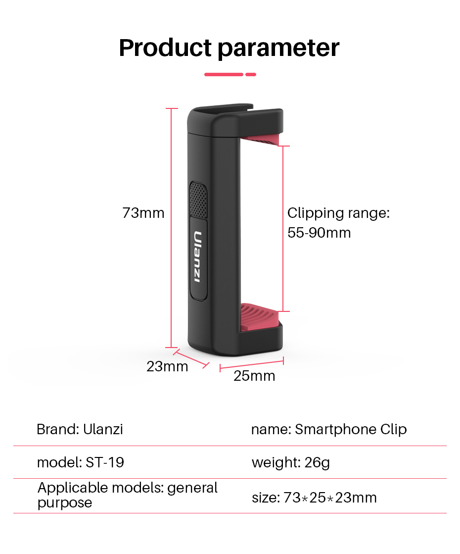 1. Многофункциональный зажим для мобильного телефона изготовлен из высококачественного материала ABS, прочного, легкого и портативного, весит 25 г/0,9 унции.