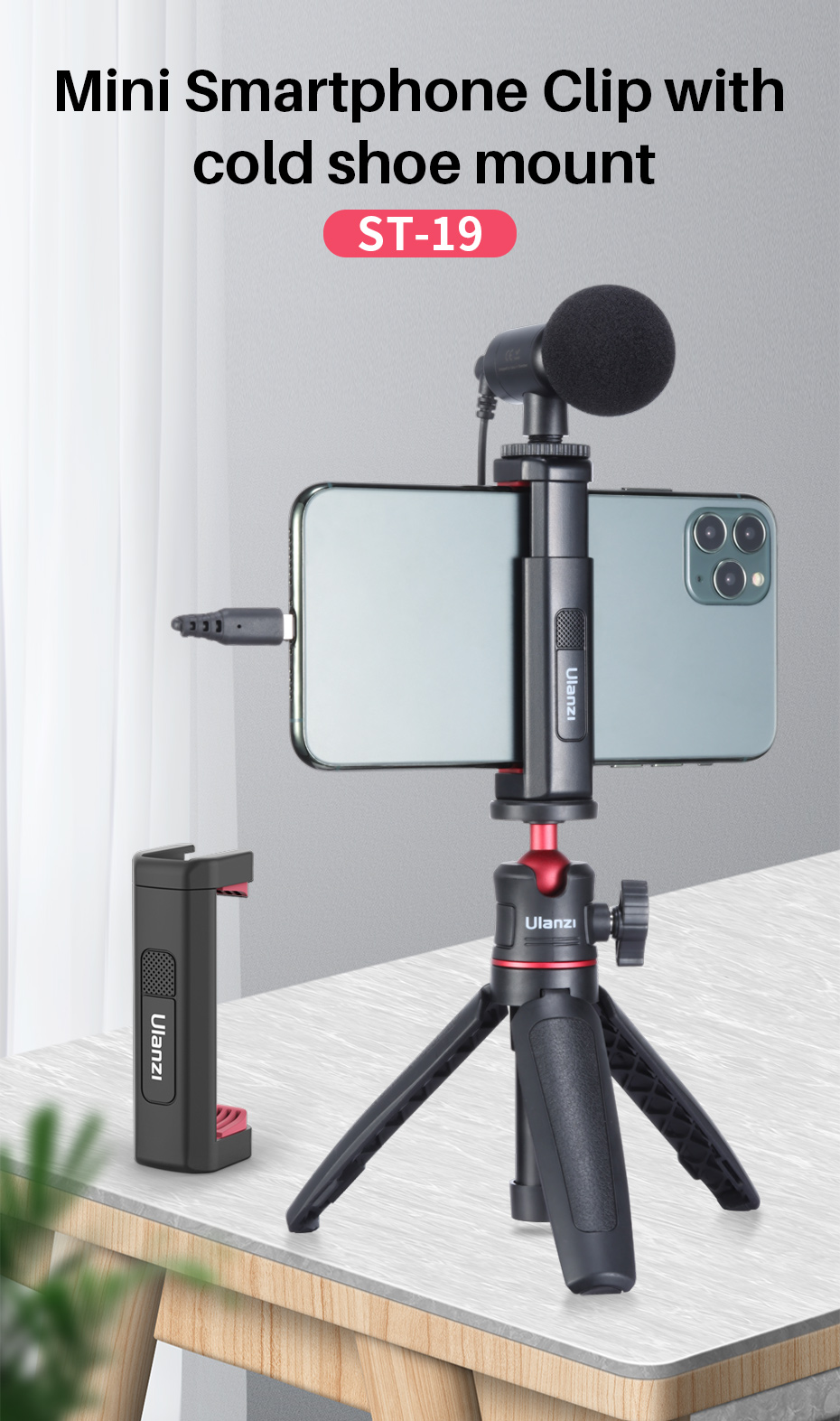 Портативный держатель для телефона VIJIM Ulanzi, зажим-зажим с холодным башмаком, 1/4 дюйма, штатив, подставка для микрофона, заполняющее устройство для TikTok Vlog