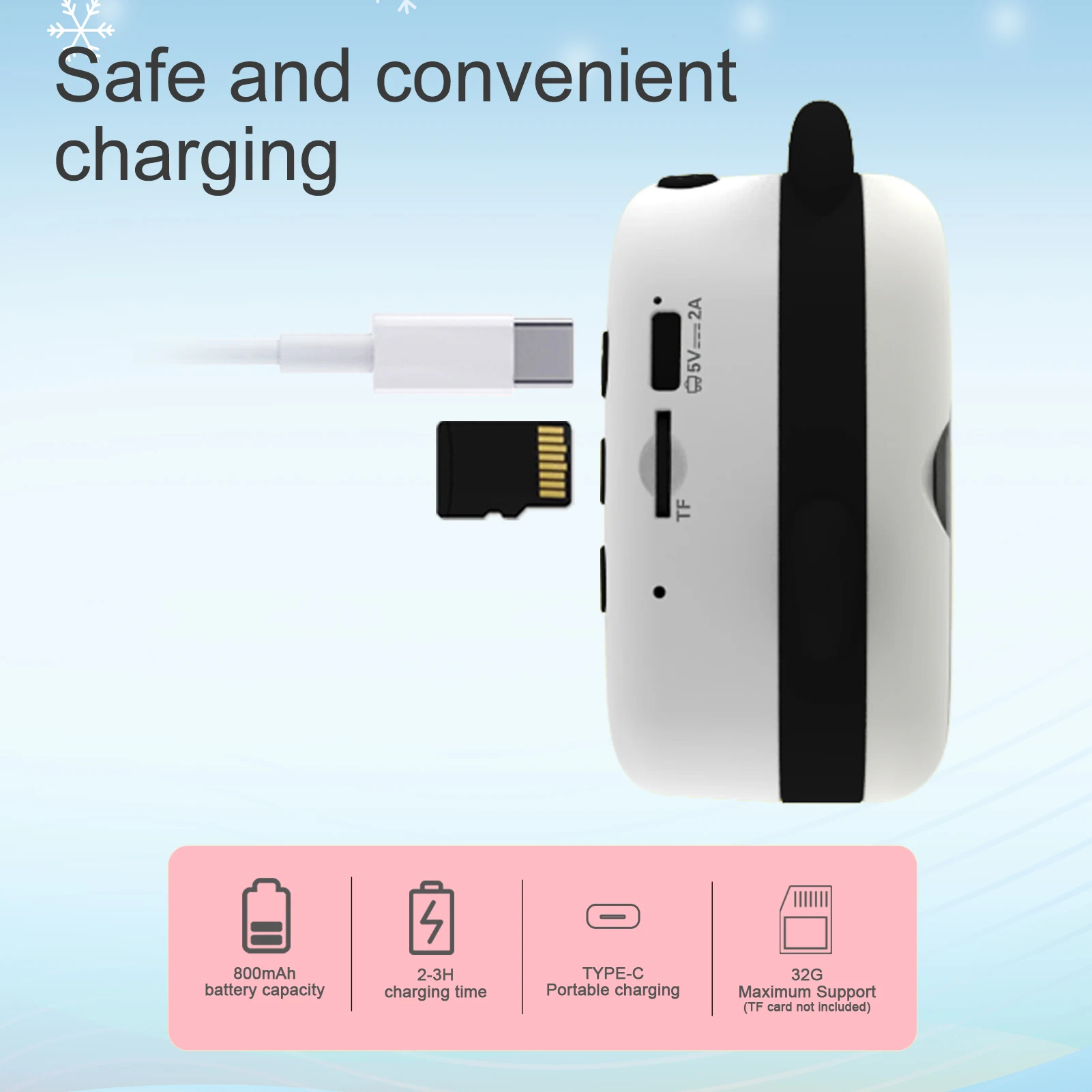 Длительный Режим ожидания:Встроенный аккумулятор 800 мАч, длительное время ожидания. Максимальная поддержка расширенной памяти 32 ГБ, он может хранить больше фотографий или видео (карта памяти не входит в комплект).