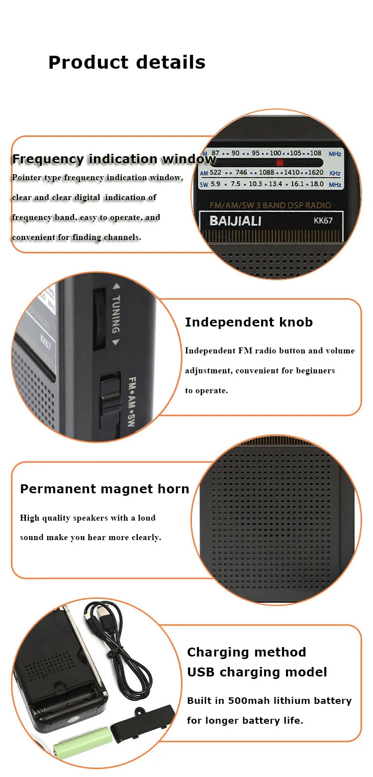 Портативный DSP-радио Mini FM AM SW многодиапазонный радиоприемник с окном индикации частоты 3,5 мм разъем для наушников перезаряжаемый