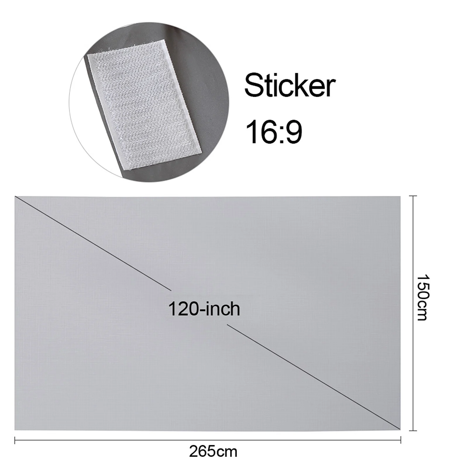 Это безрамочный проекционный экран с наклейками, который легко установить на стену или снять с нее. Он равномерно рассеивает проецируемый свет, и вы испытаете идеальное визуальное наслаждение с оптимальным изображением и цветопередачей. Его можно сложить как можно меньше, и он не займет много места, его удобно брать с собой куда угодно. Он универсально совместим с большинством представленных на рынке светодиодных, ЖК-или DLP-проекторов. Изготовлен из полиэфирного материала, легко чистится, влагостойкий, устойчивый к плесени, не выцветает при длительном использовании, без запаха.