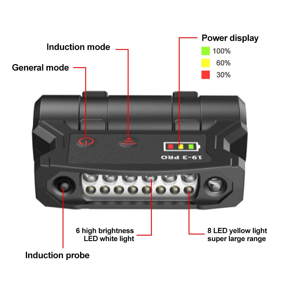 1. Ваш палец чувствует налобный фонарь. Когда ваша рука находится в пределах 15 см от фары, фара включается. Когда ваш палец покинет фару, фара погаснет.