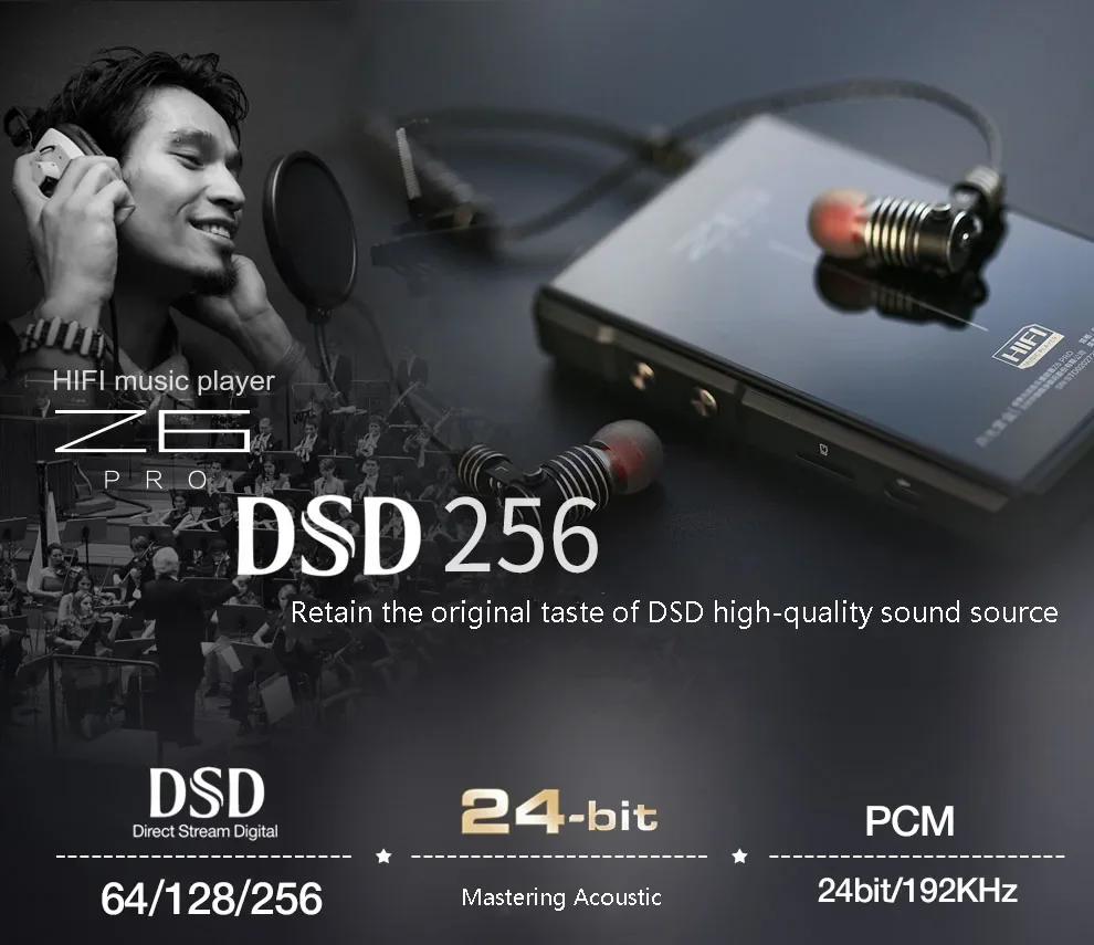 Портативный Hi-Fi музыкальный плеер Z6Pro, MP3 двухъядерный, беспроводной Bluetooth DSD256 HD декодирование без потерь