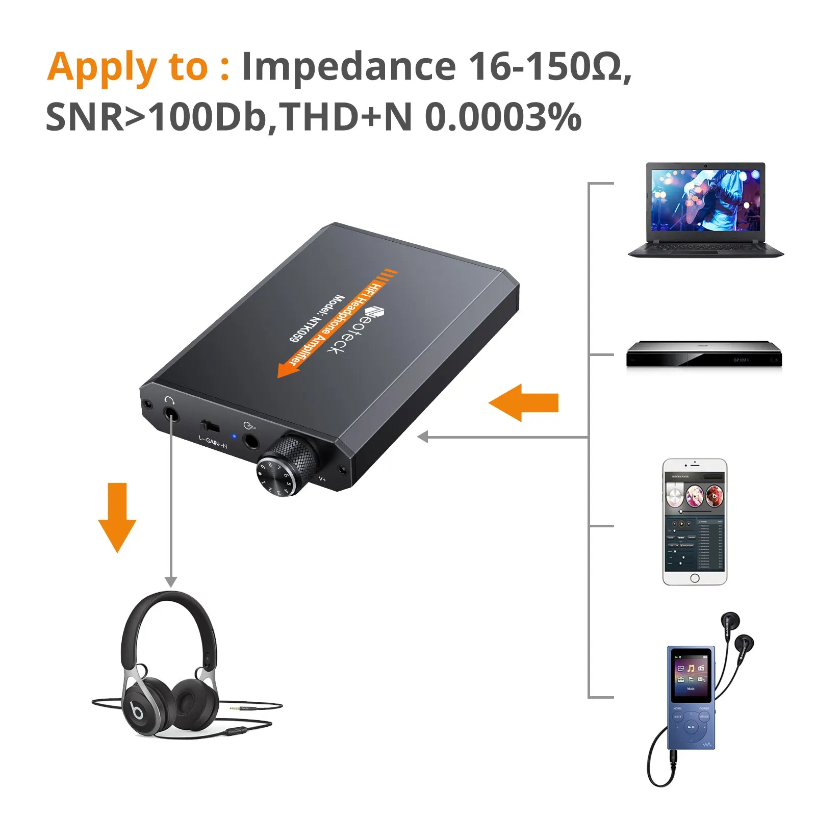 Портативный Hi-Fi усилитель для наушников Neoteck, 3,5 мм, AUX-вход, 16-150 Ом
