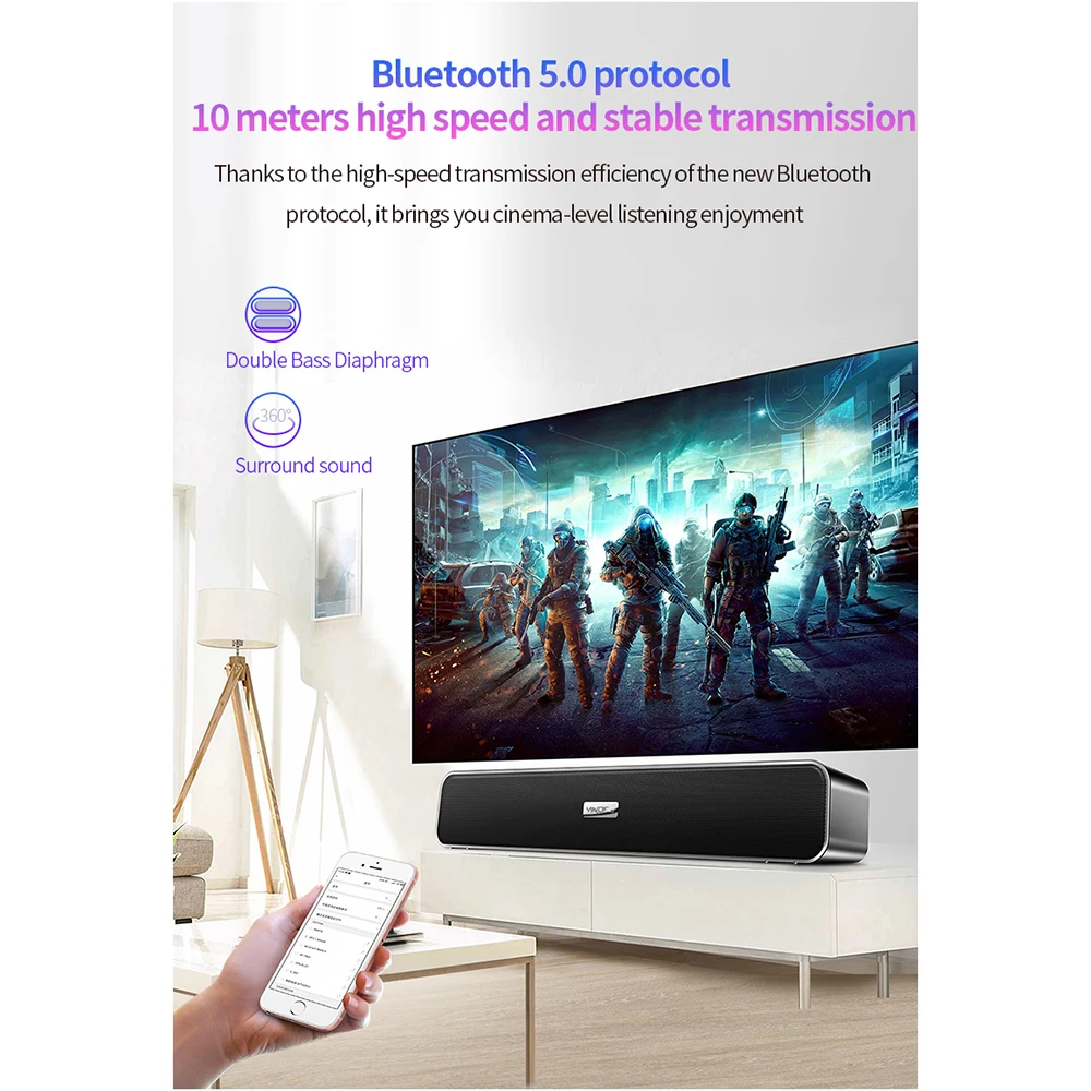 Беспроводная звуковая панель, компьютер, Bluetooth динамик, высокий бумбокс, открытый бас, HIFI, TF, FM радио, аудио, USB, умный сабвуфер, динамик