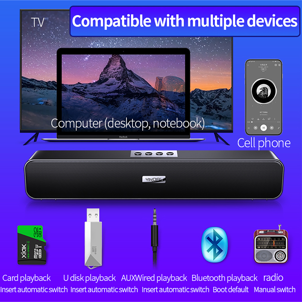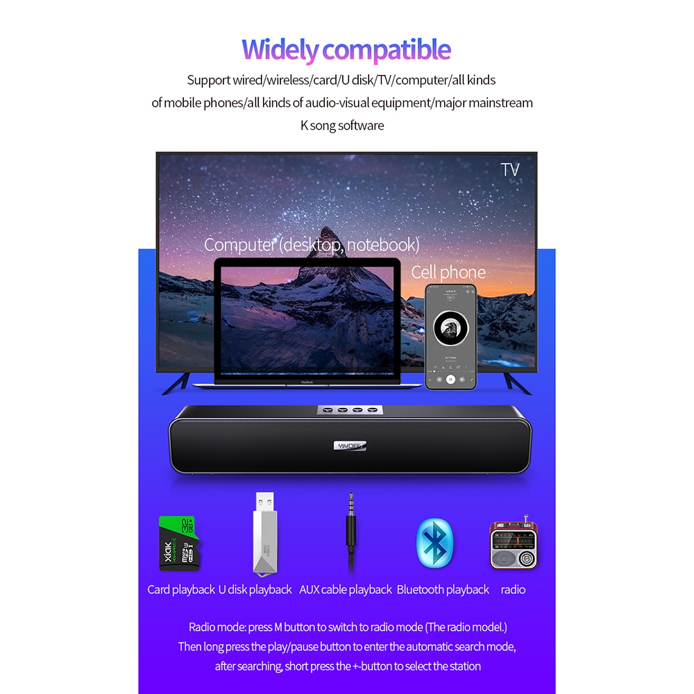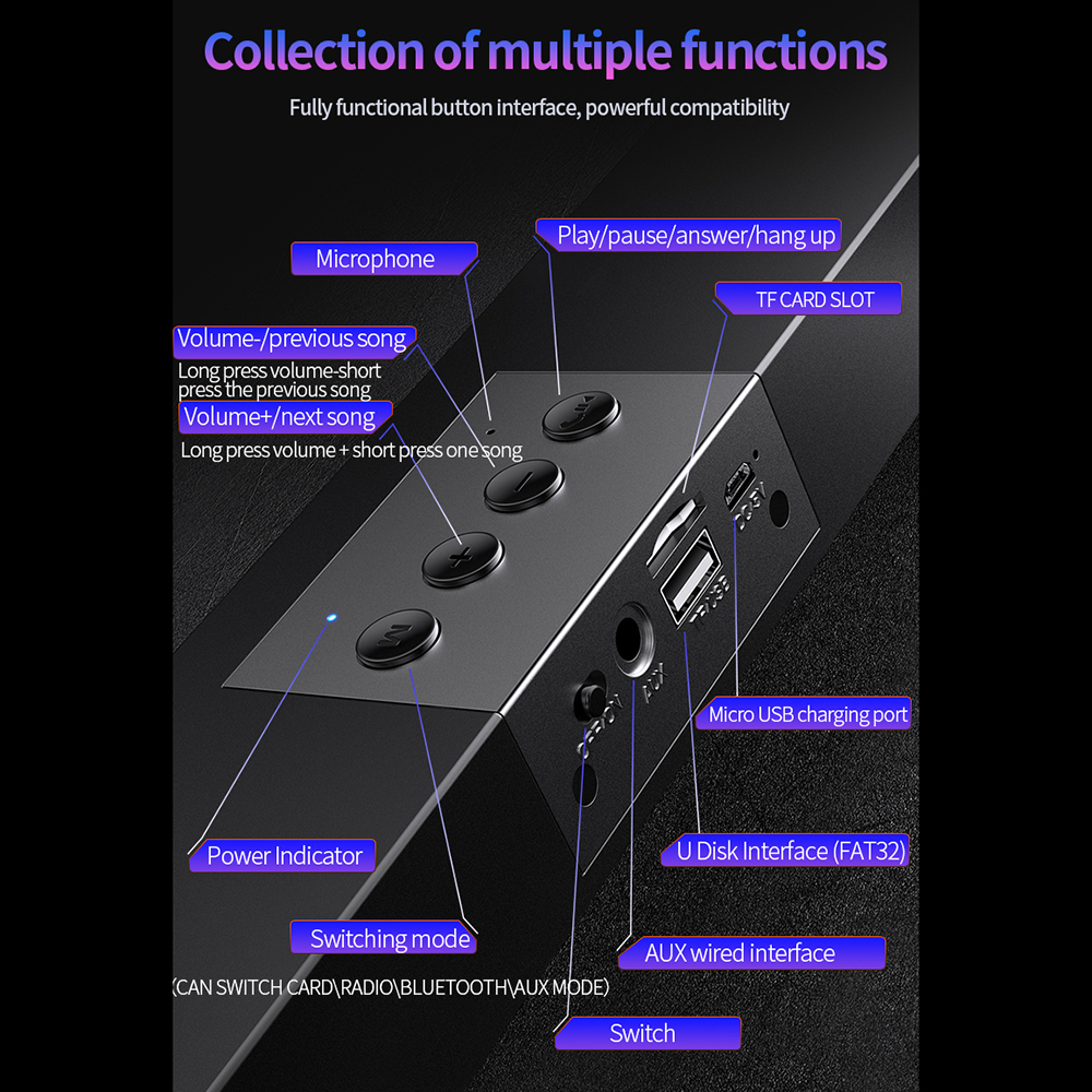 Воспроизведение нескольких режимов: Поддержка AUX-in, sd-карты, usb-диска, бесплатно для вас, чтобы наслаждаться музыкой.