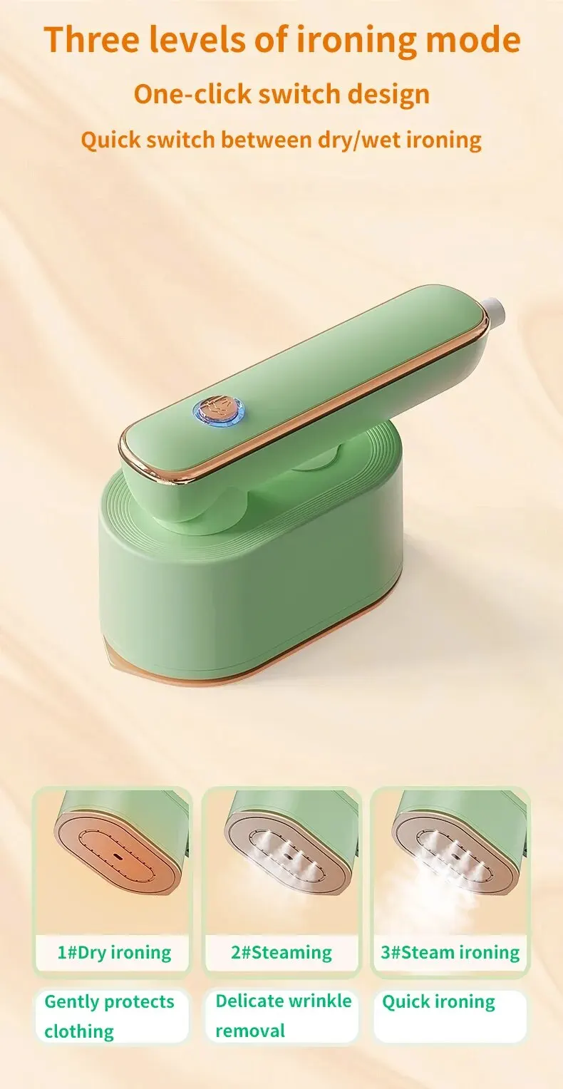 • Портативный Мини-паровой Утюг:Складная конструкция ручки и легкий вес (до 1,3 кг) делают этот мини-паровой утюг удобным для переноски и хранения, идеально подходящий для путешествий или использования в дороге.