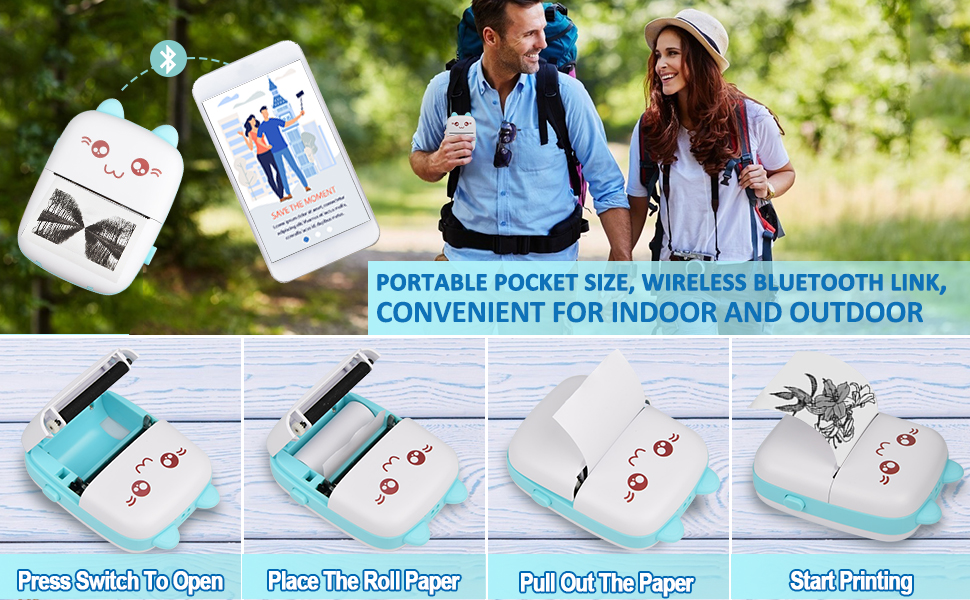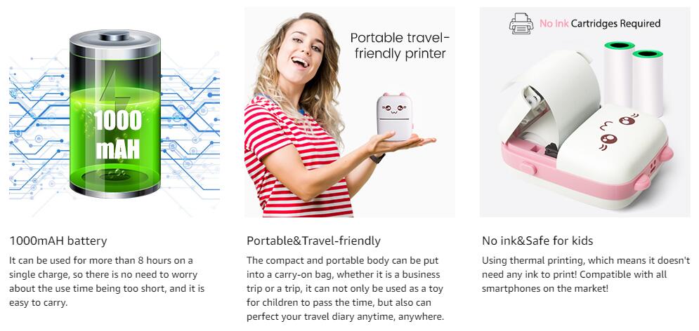 ❤?【Портативный и удобныйМини портативный принтер можно положить в карман или сумку, встроенный аккумулятор 1000 мАч, карманный принтер используется для 6-8 часов или в режиме ожидания в течение недели.