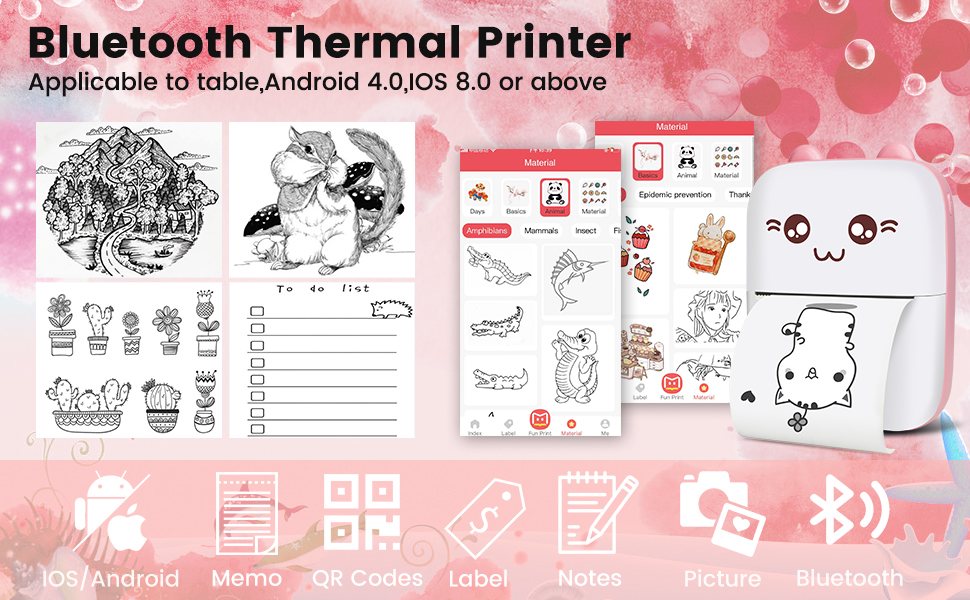 Это приложение этого производителя наклеек предоставляет множество бесплатных шаблонов, содержащих текст, таблицы, символы, логотипы, штрих-коды, qr-коды, изображения, время, вставка Excel и т. Д. Мини-принтер с высоким разрешением 200dpi и 5V интерфейсом, Что делает ваше качество печати более выдающимся. Прекрасный внешний вид. Это идеальный подарок для девочки или мальчика на день рождения, вечерние, Рождество, пасху.
