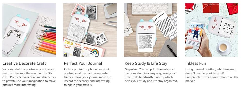 【Широкое использование 】Этот принтер подходит для печати черно-белых фотографий, заметок, обучения ручной работы, рабочих планов, списков покупок и других приложений, это важный подарок для влюбленных, друзей и членов семьи.