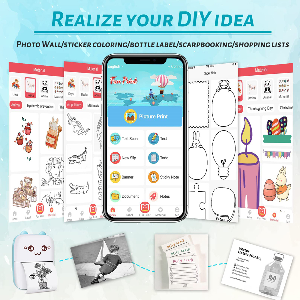 【Многофункциональный карманЗагрузите приложение «fun print» на свой мобильный телефон, и вы можете выбрать из сотни бесплатных текста, изображений, границ, форм, выражений и qr-кодов для удовлетворения различных потребностей в вашей жизни.