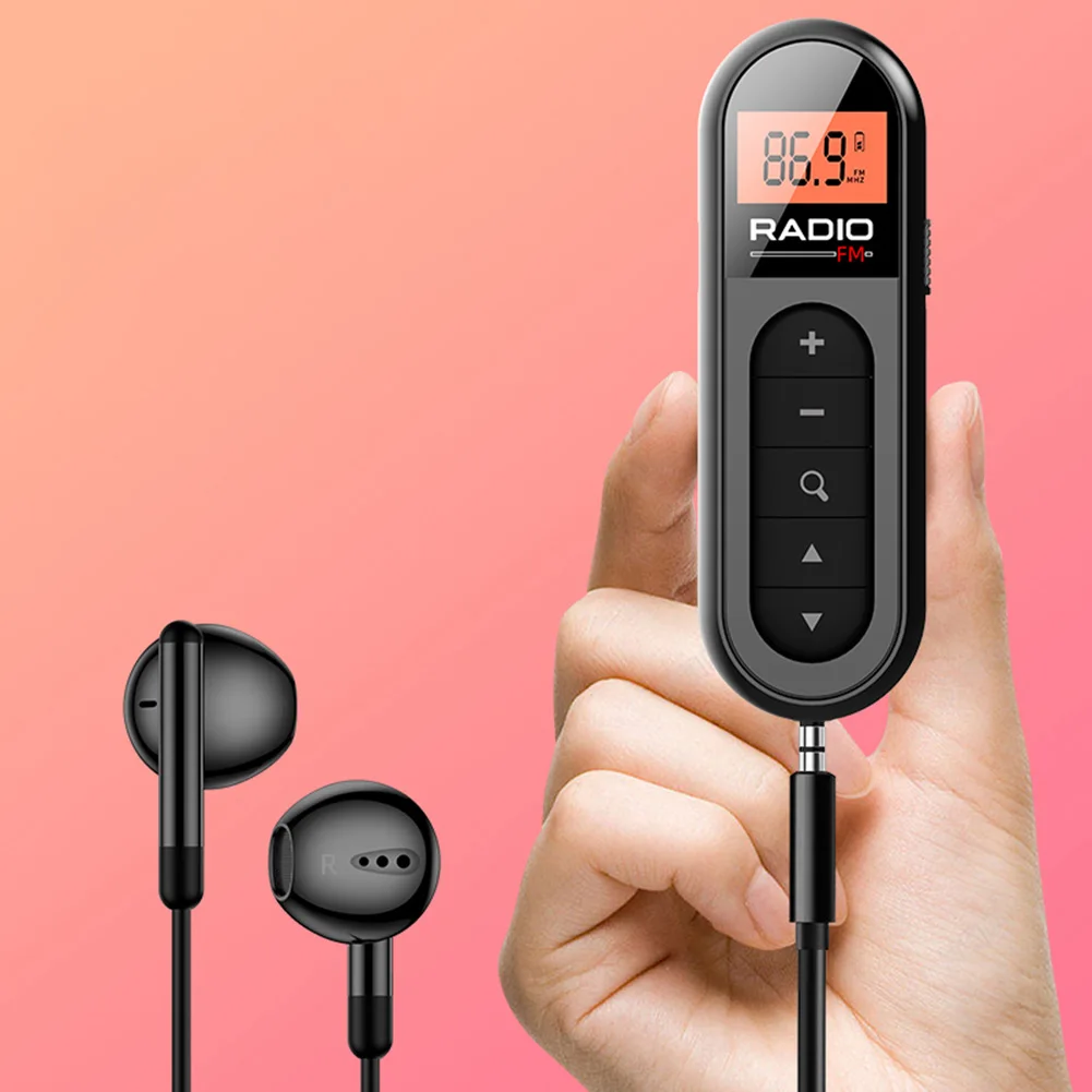 Мини-карманное FM-радио 76-108 МГц Портативный радиоприемник Перезаряжаемый зажим Маленькое радио с подсветкой ЖК-дисплей Разъем для наушников 3,5 мм для конференций Гид Гонки