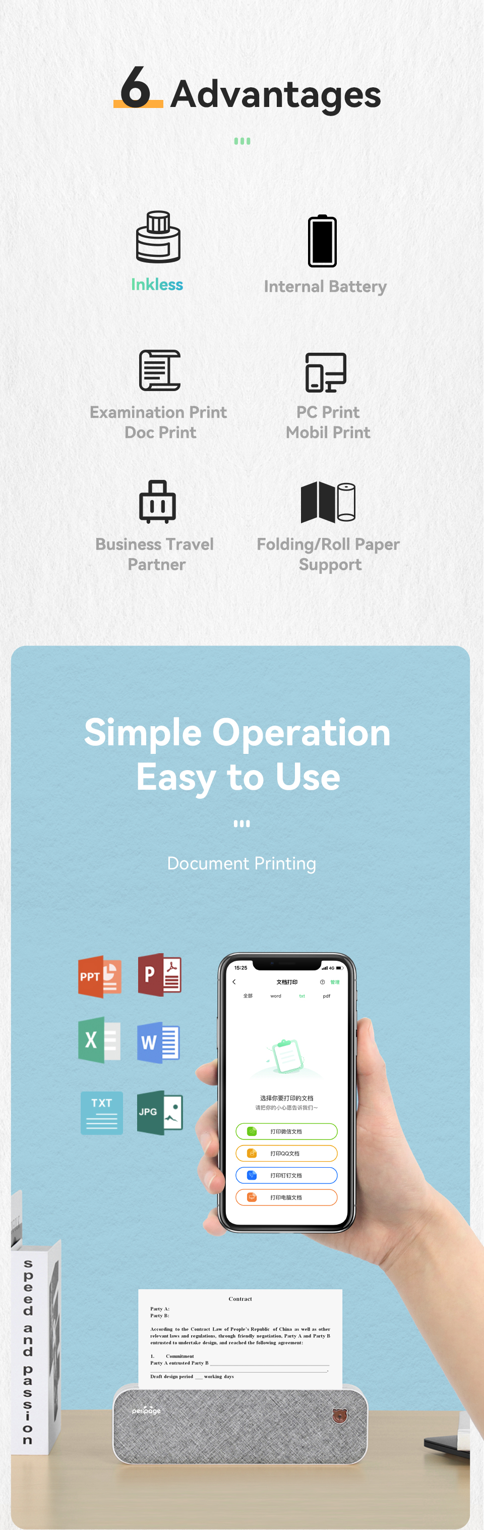 Портативный принтер A4 нуждается в термобумаги, не поддерживает обычную бумагу