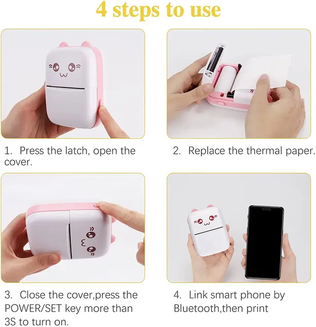 Портативный мини-термопринтер с поддержкой беспроводной связи, BT, 203dpi