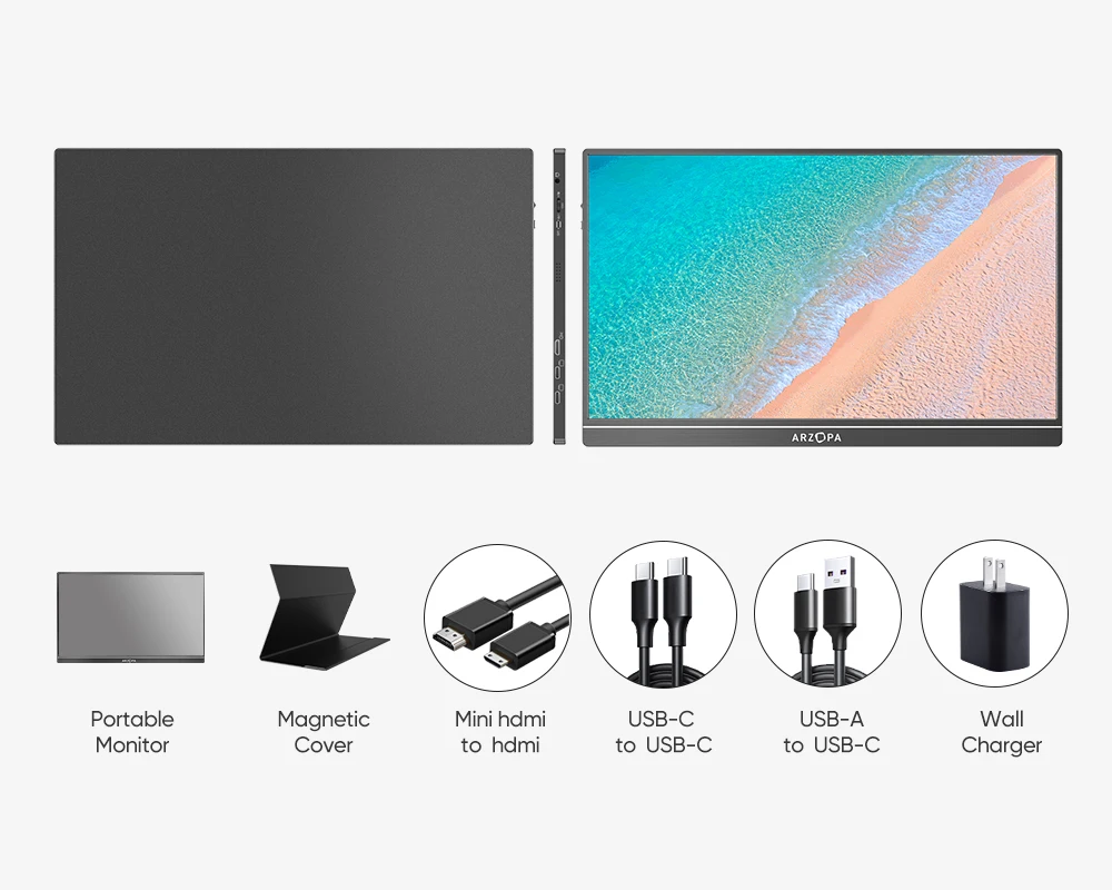 Портативный монитор Arzopa 15,6 ''FHD 1080P с mini-HDMI USB портом, IPS-монитор для ПК, ноутбука, Mac Switch, Xbox, ps4