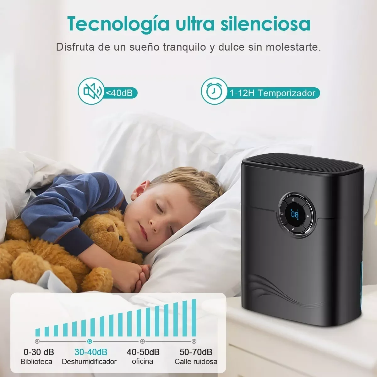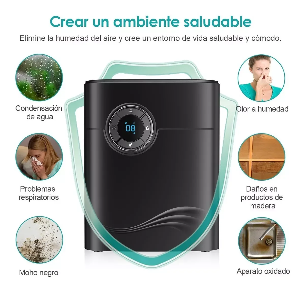 В осушителе используются чувствительные к влажности полупроводники, которые могут устранять влагу стабильной и эффективной и предотвращать рост микроорганизмов и клещей, вызванных влагой. Фильтр с активированным углем на входе воздуха и функция очистки отрицательных ионов могут очищать воздух от грязи, двойную защиту, поддерживать здоровье семьи, подходит для помещений площадью до 20 квадратных метров.