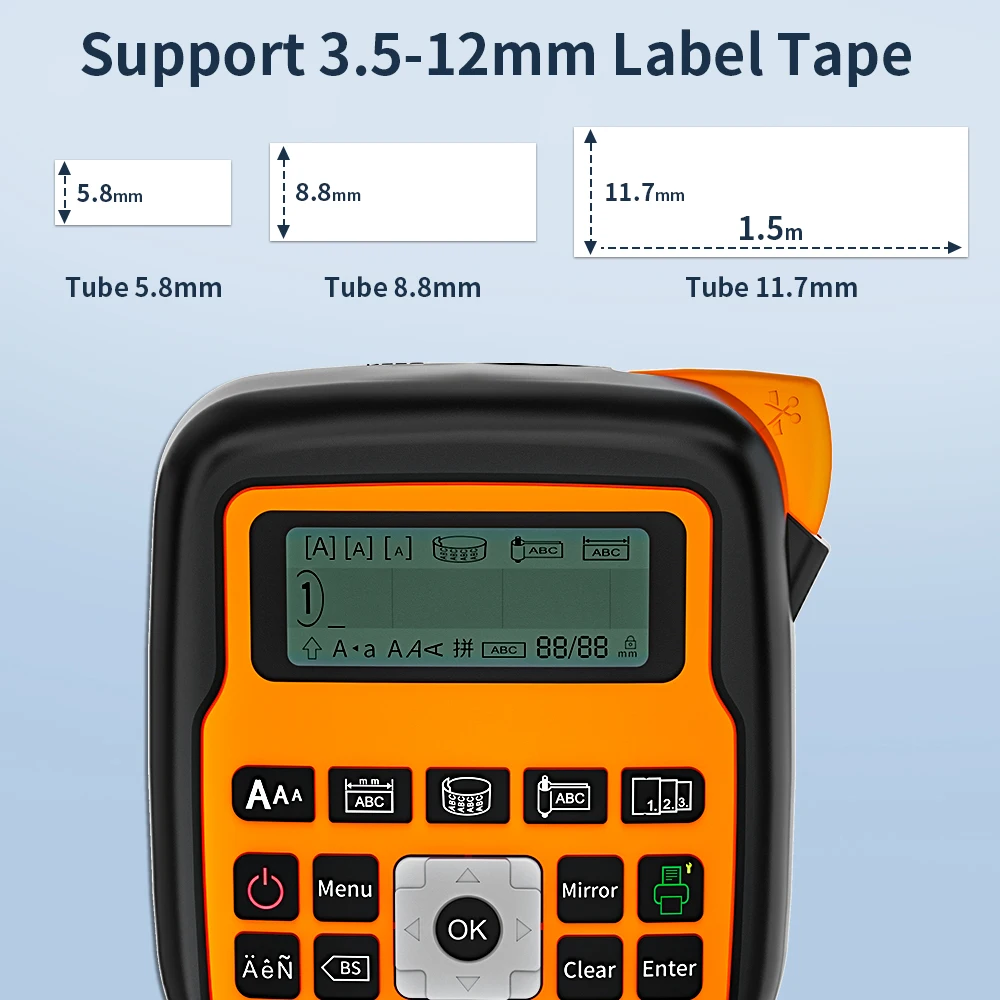 E1000 PRO Портативная Этикетировочная машина Промышленная Этикетировочная машина Type-C Порт Печать Клейкая этикетка Термоусадочная трубка Атласная лента Поддержка этикеток 3,5-12 мм Лента для этикеток Совместимость с Brother tze231 hse231 fa231