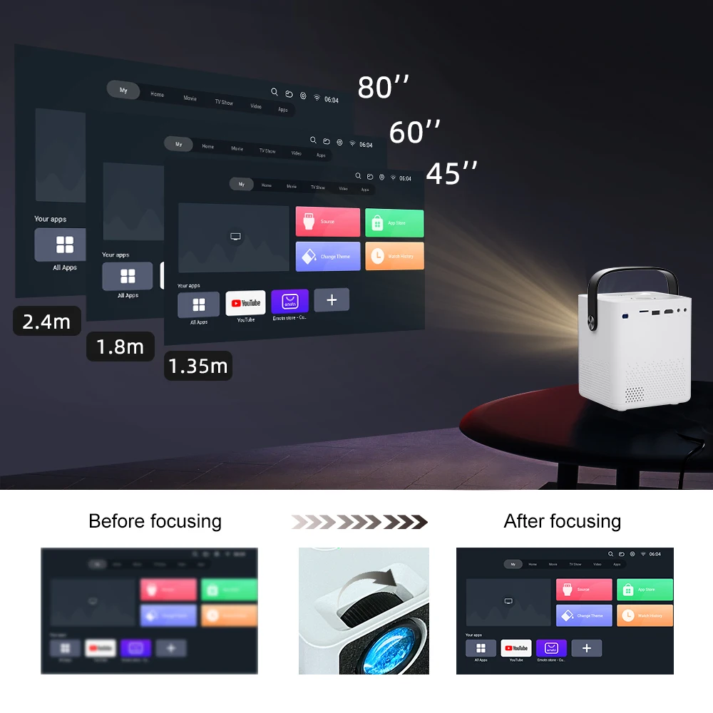 4. Как и во всех светодиодных проекторах, как правило, чем выше яркость, тем громче шум. Покупатели могут попробовать заменить маломощный вентилятор, но это уменьшит яркость и рассеивание тепла. Мы не принимаем такие споры. 5. Из-за технических характеристик ЖК-дисплея минимальный размер проекции составляет 40 дюймов, в противном случае его невозможно четко отрегулировать.