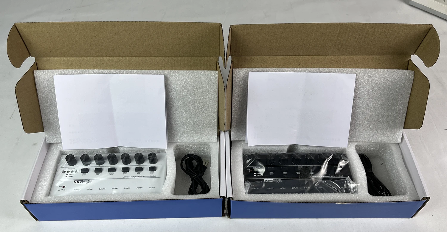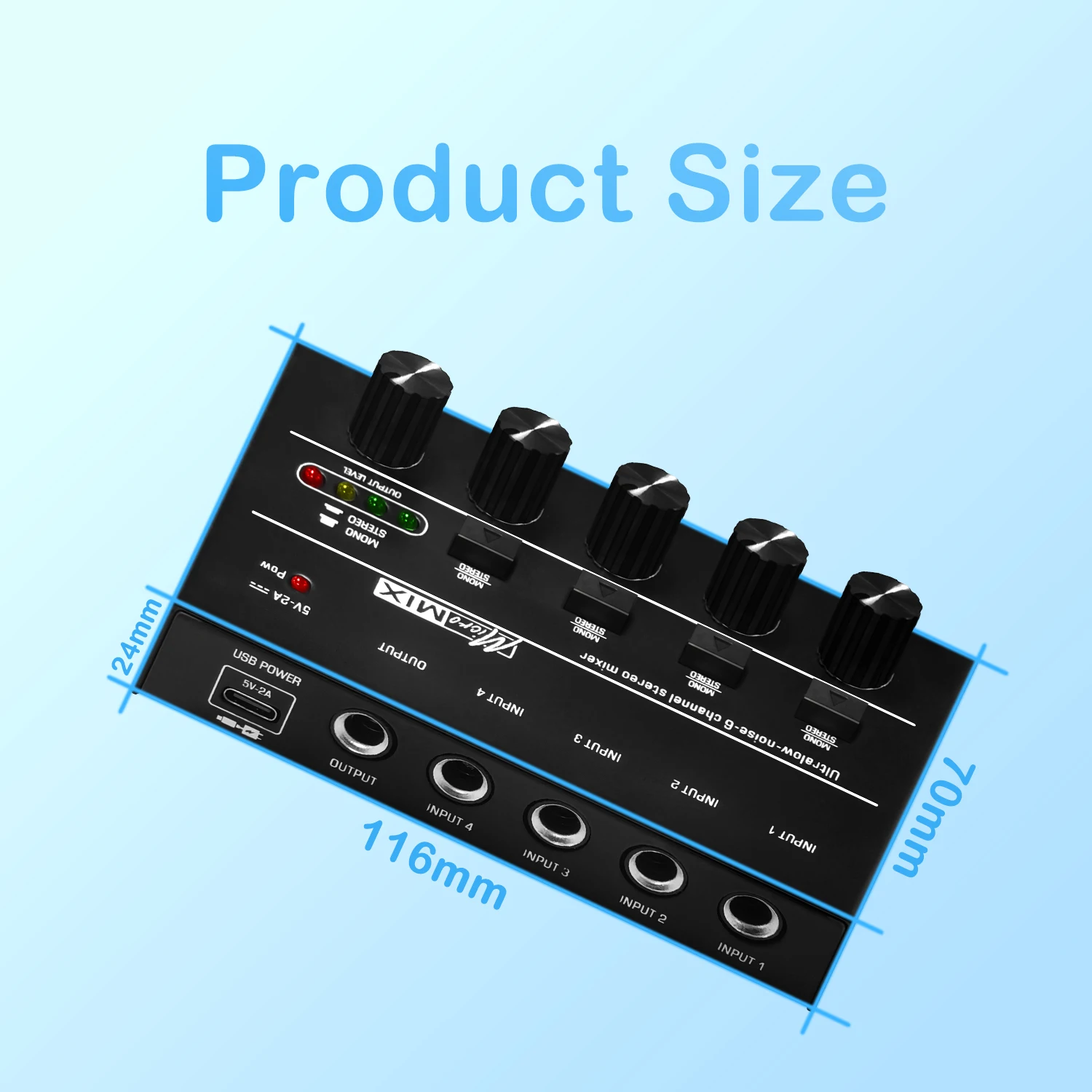 Mini audio mixer производит высокое качество звука на всех уровнях вывода, обладает сверхнизким уровнем шума и обеспечивает отличную производительность звука. Без искажений и легко настроить, идеально подходит для быстрого смешивания 4/6 сигналов линейного уровня без сложности. 4/6 канальный миксер производит Высочайшее качество сигнала с высочайшей целостностью сигнала даже на самых высоких уровнях. Идеально подходит для многоклавишных устройств и записи.