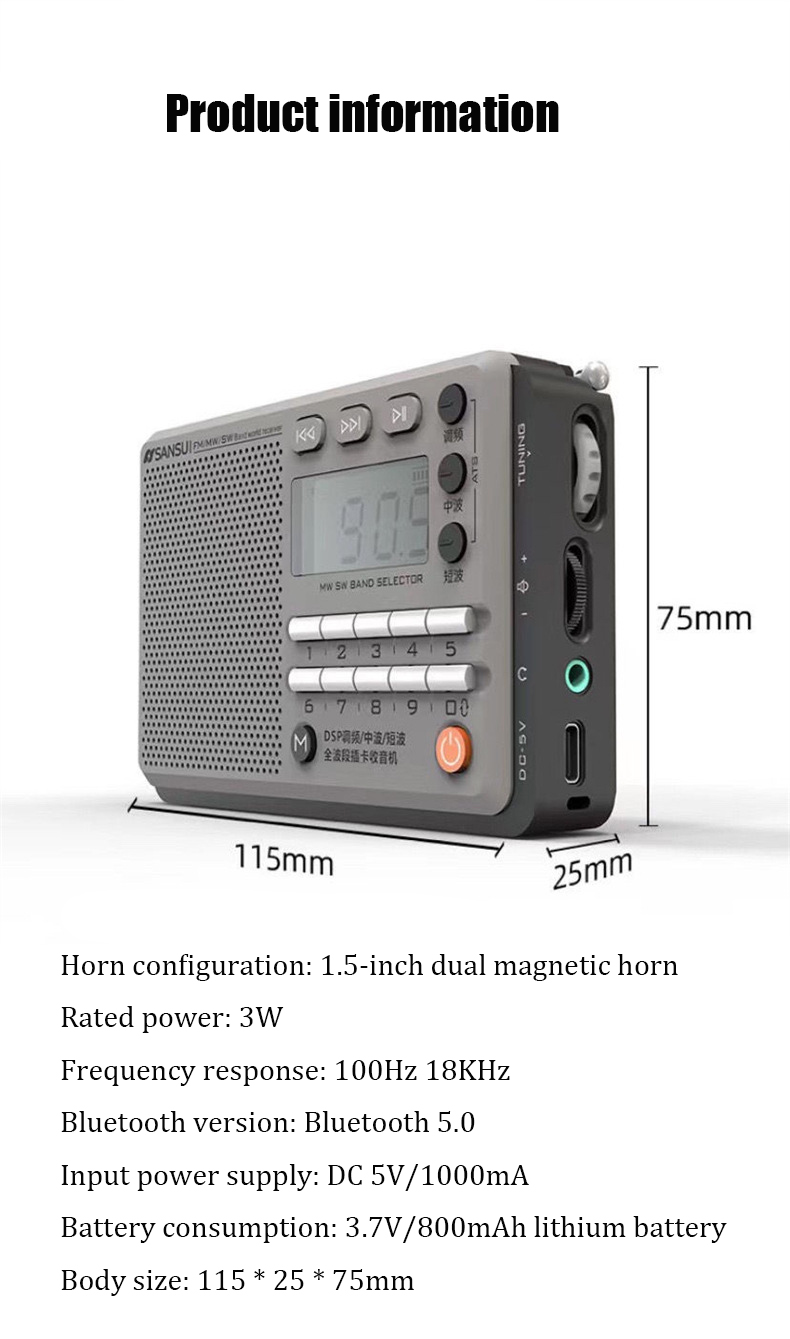 Портативный Полнодиапазонный радиоприемник FM AM SW Радиоприемник Мини Bluetooth-динамик с подсветкой Дисплей Автоматический ручной поиск Таймер сна