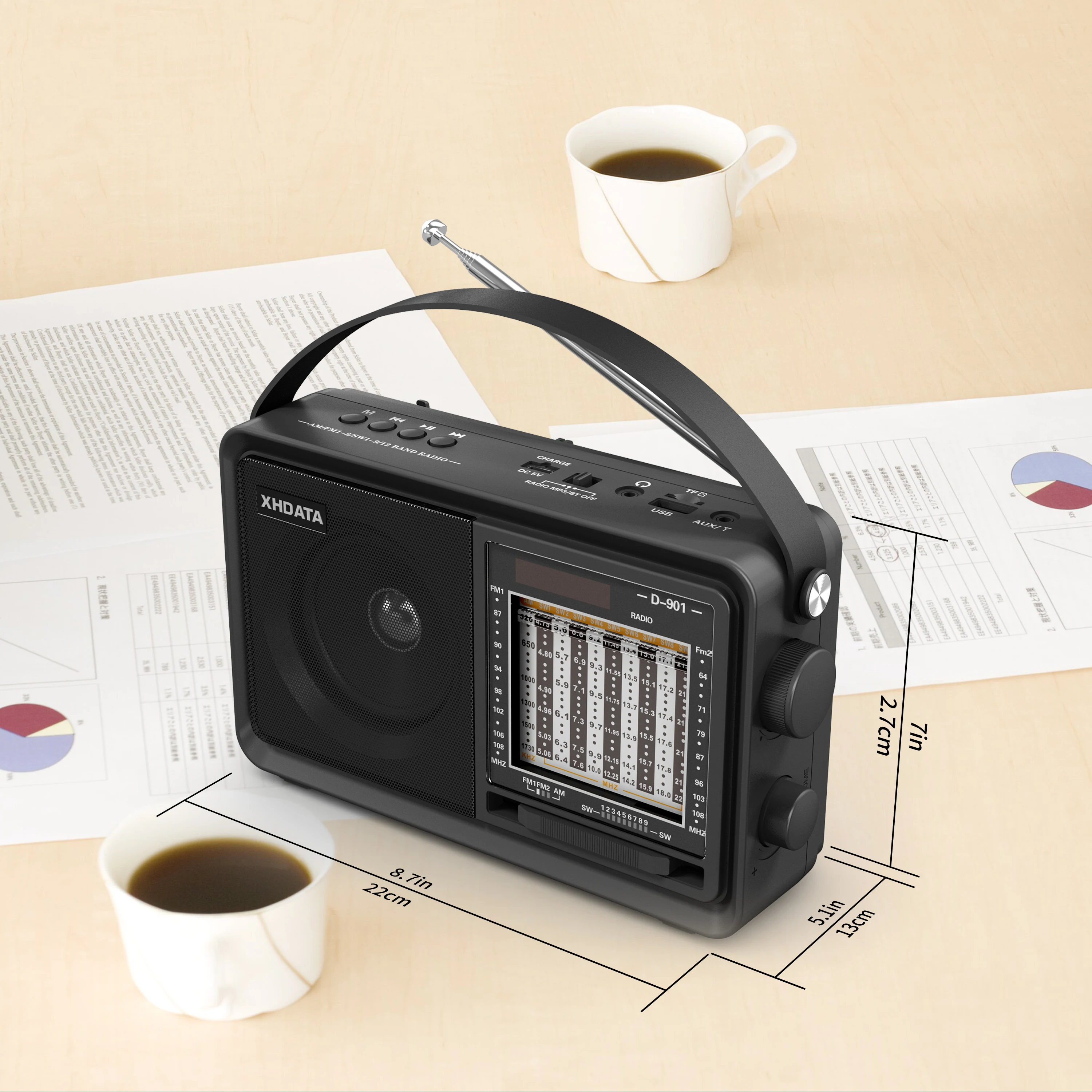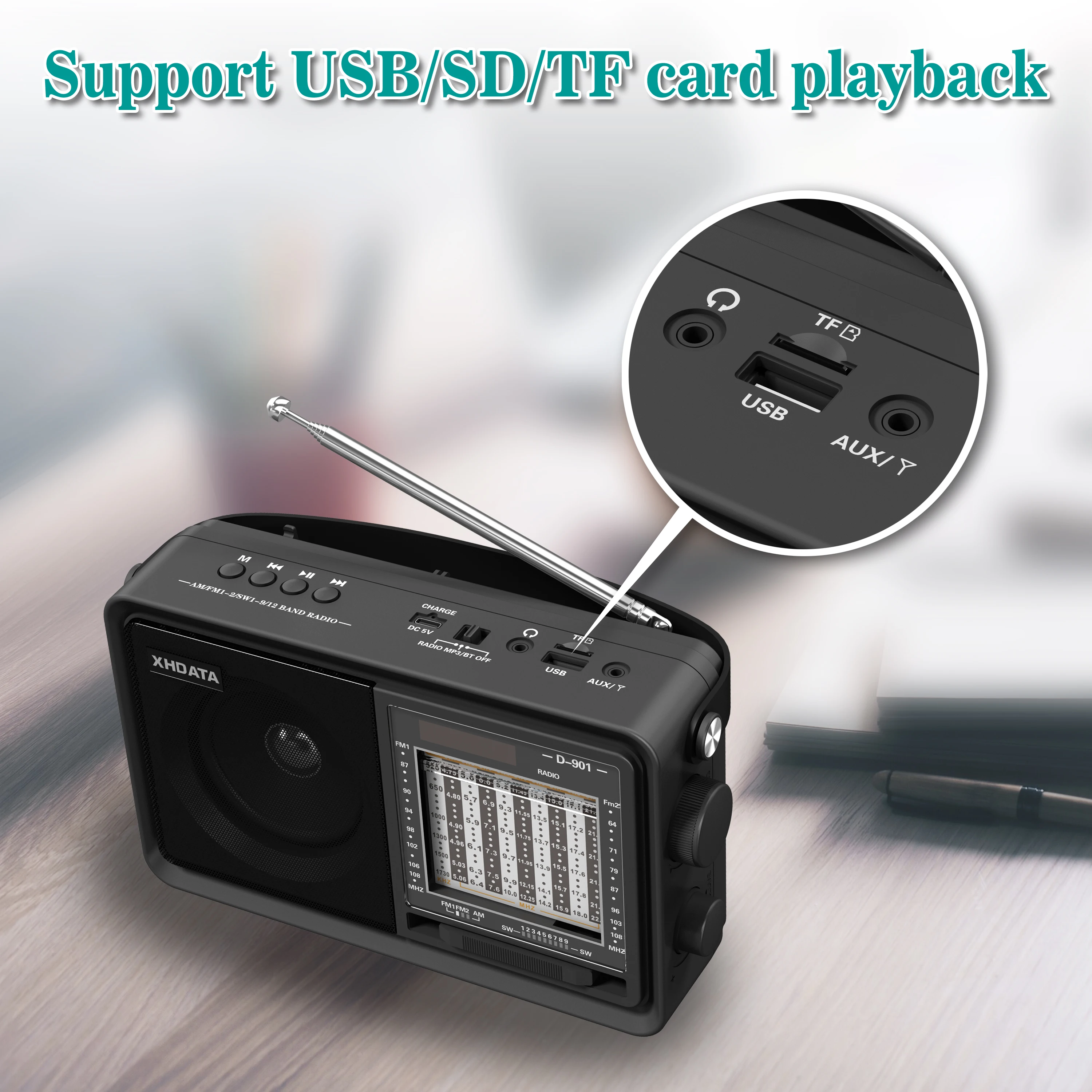 Портативный радиоприемник XHDATA D-901 AM, FM-радио DSP, компактный радиоприемник SW, MP3-плеер, Bluetooth-совместимый музыкальный плеер для пожилых людей