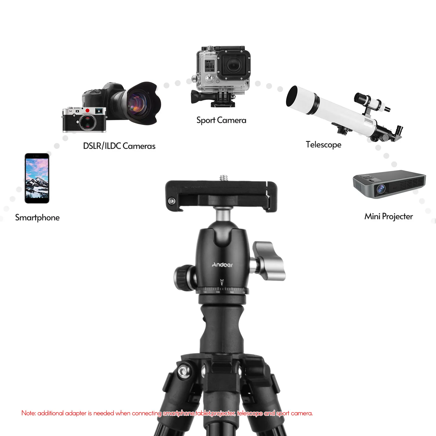 С прочными фиксаторами, легко работать; Макс. Грузоподъемность составляет 5 кг (11 фунтов), подходит для DSLR, мини-проектора, веб-камеры, цифровой камеры и многого другого; БЫСТРОРАЗЪЕМНАЯ пластина также может использоваться как зажим для смартфона, не требует дополнительного зажима, совместимость со смартфонами iPhone, Samsung, Huawei.