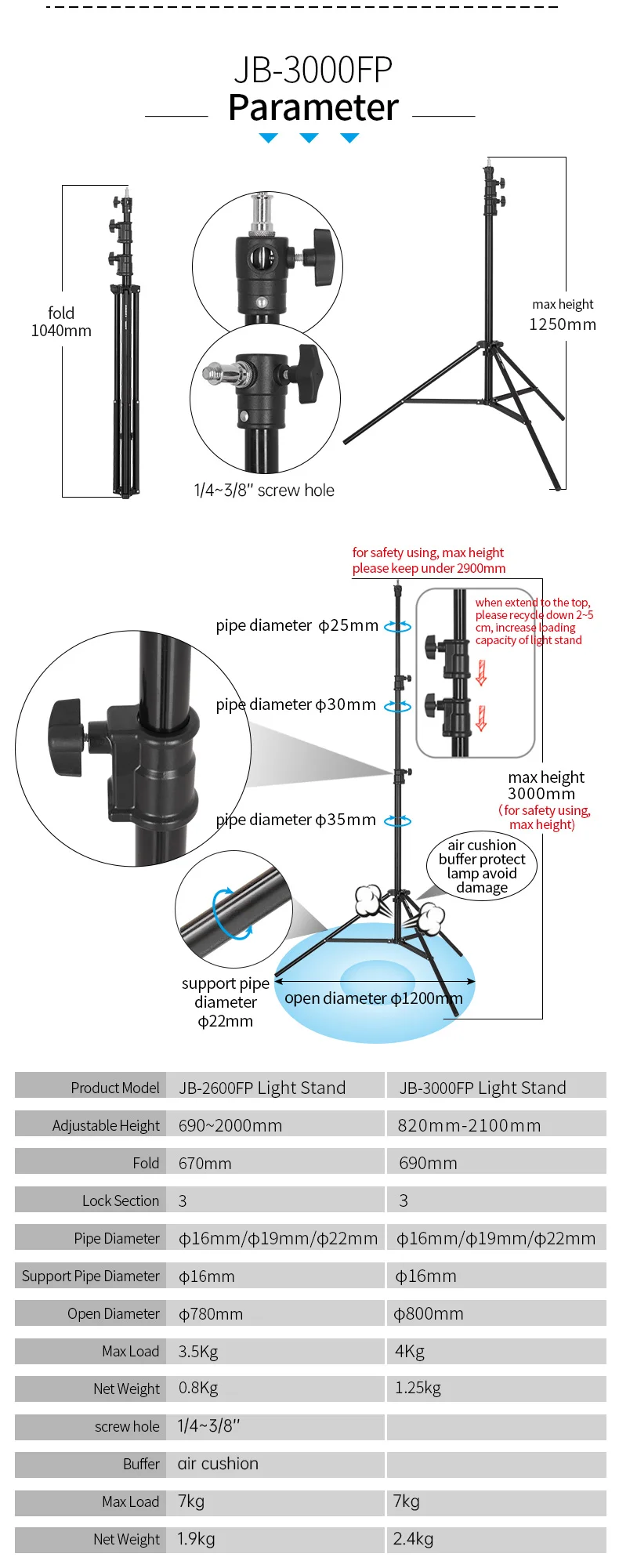 Портативный штатив JINBEI для фотостудии, 2,65 м, 3 м