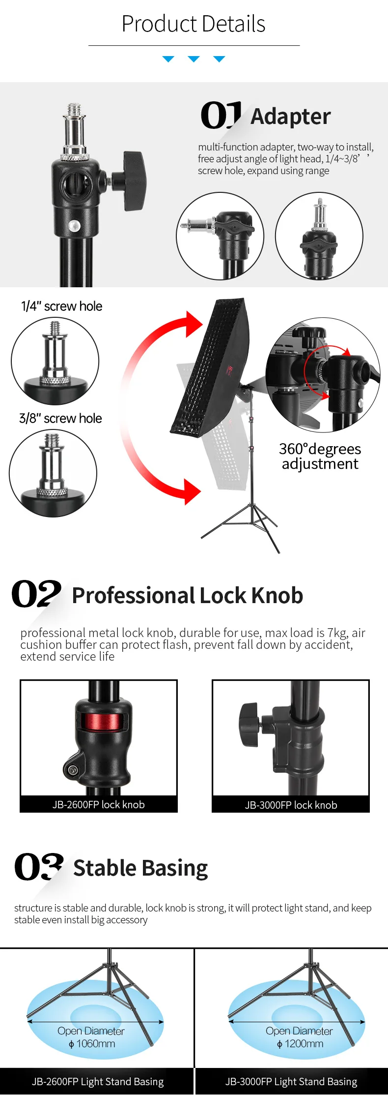 JINBEI 2,65 м 3 м на воздушной подушке Портативная подставка для освещения фотостудии 1/4 и 3/8 винтовая подставка для штатива для вспышки стробоскопического непрерывного света