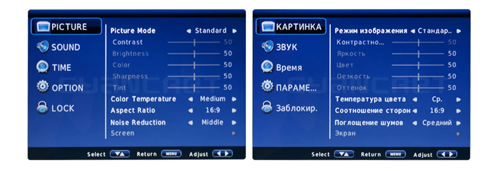 • При размещении заказа укажите, пожалуйста, нужный вам стандарт телевизора.