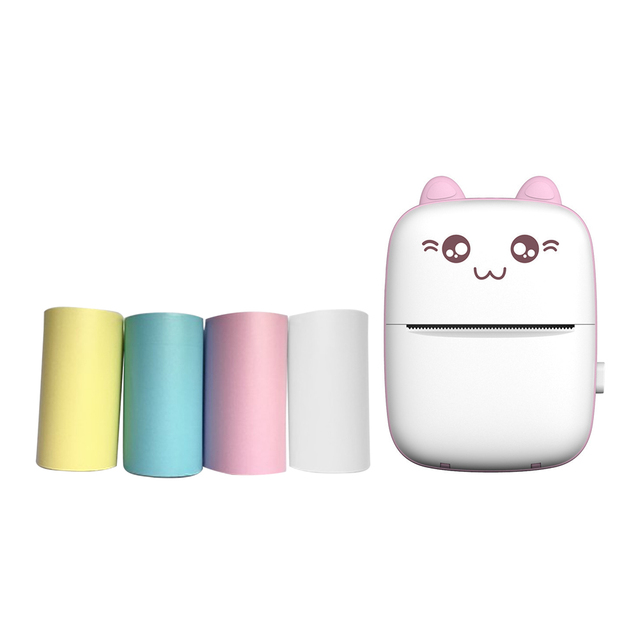 Портативный термопринтер Милый мультяшный Кот Печать Бумага Карманная печать для фотографий Беспроводная печать для принтеров Android IOS