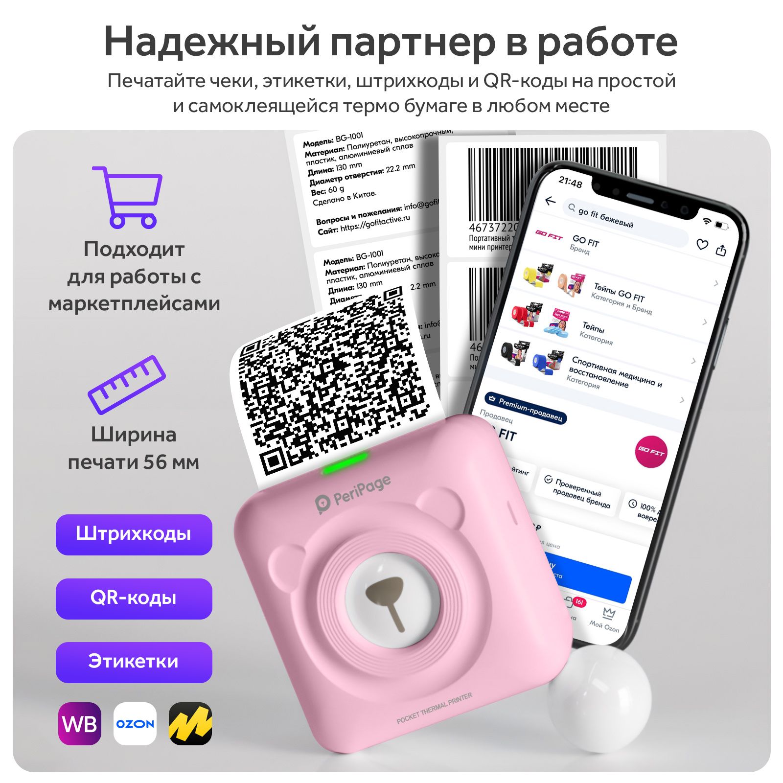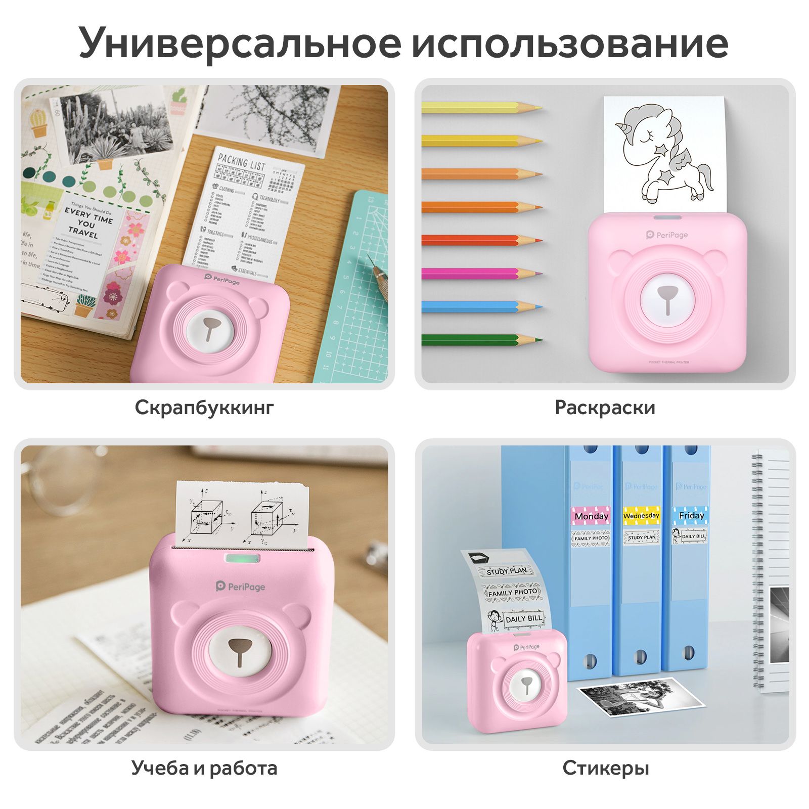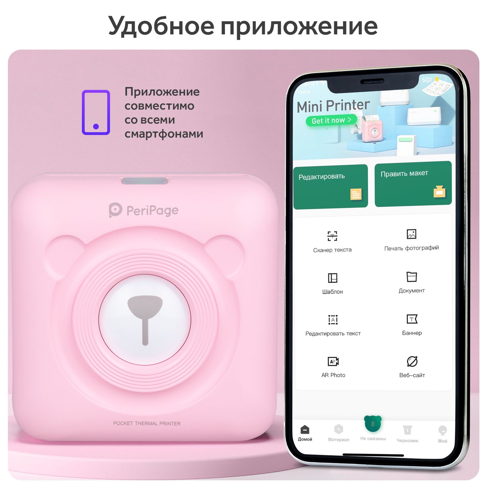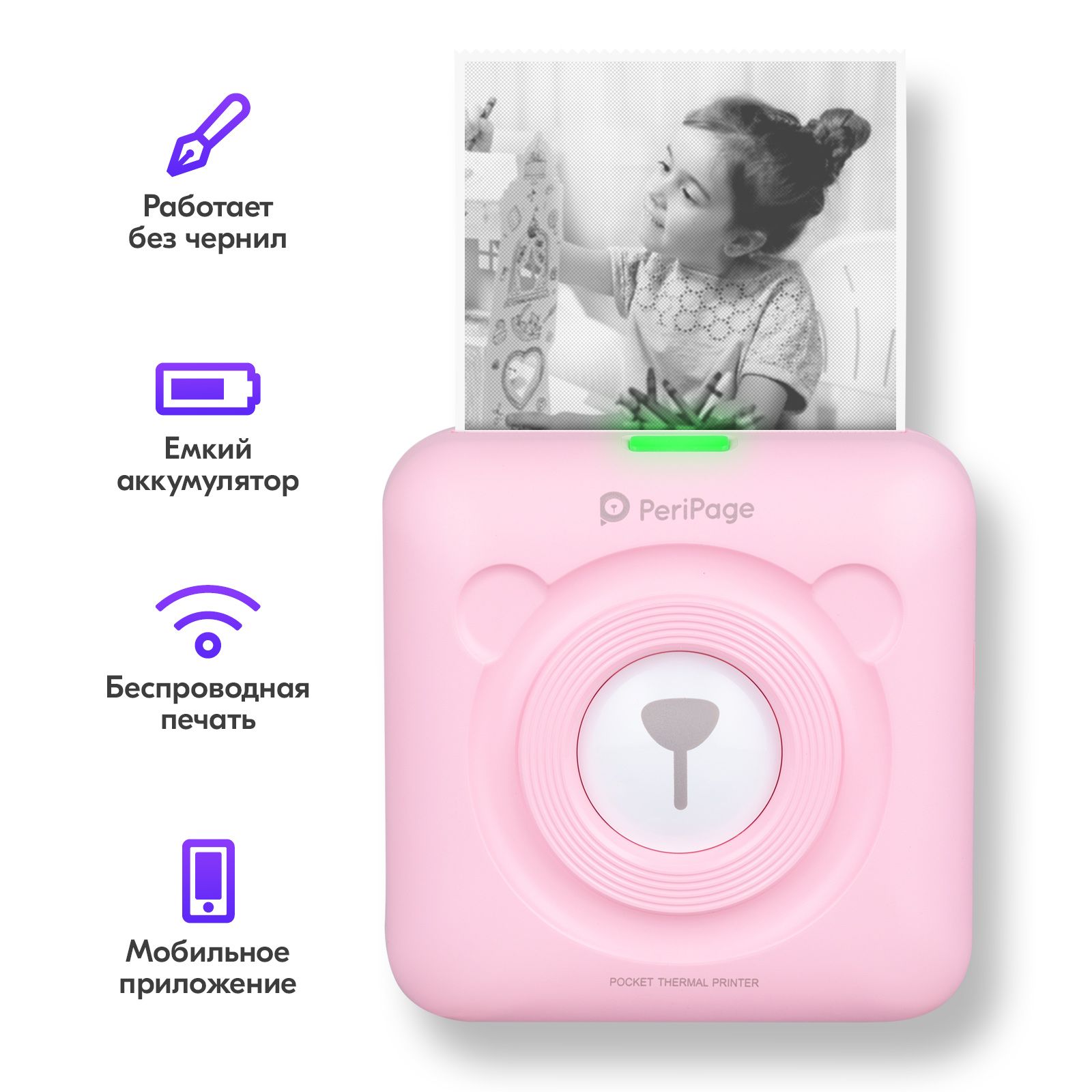 Портативный термопринтер Goodly PeriPage A6 Pocket, мини принтер для телефона, карманный принтер для печати этикеток, стикеров, наклеек, розовый