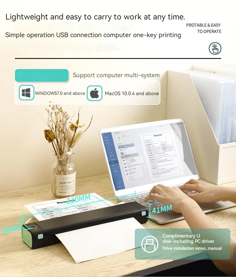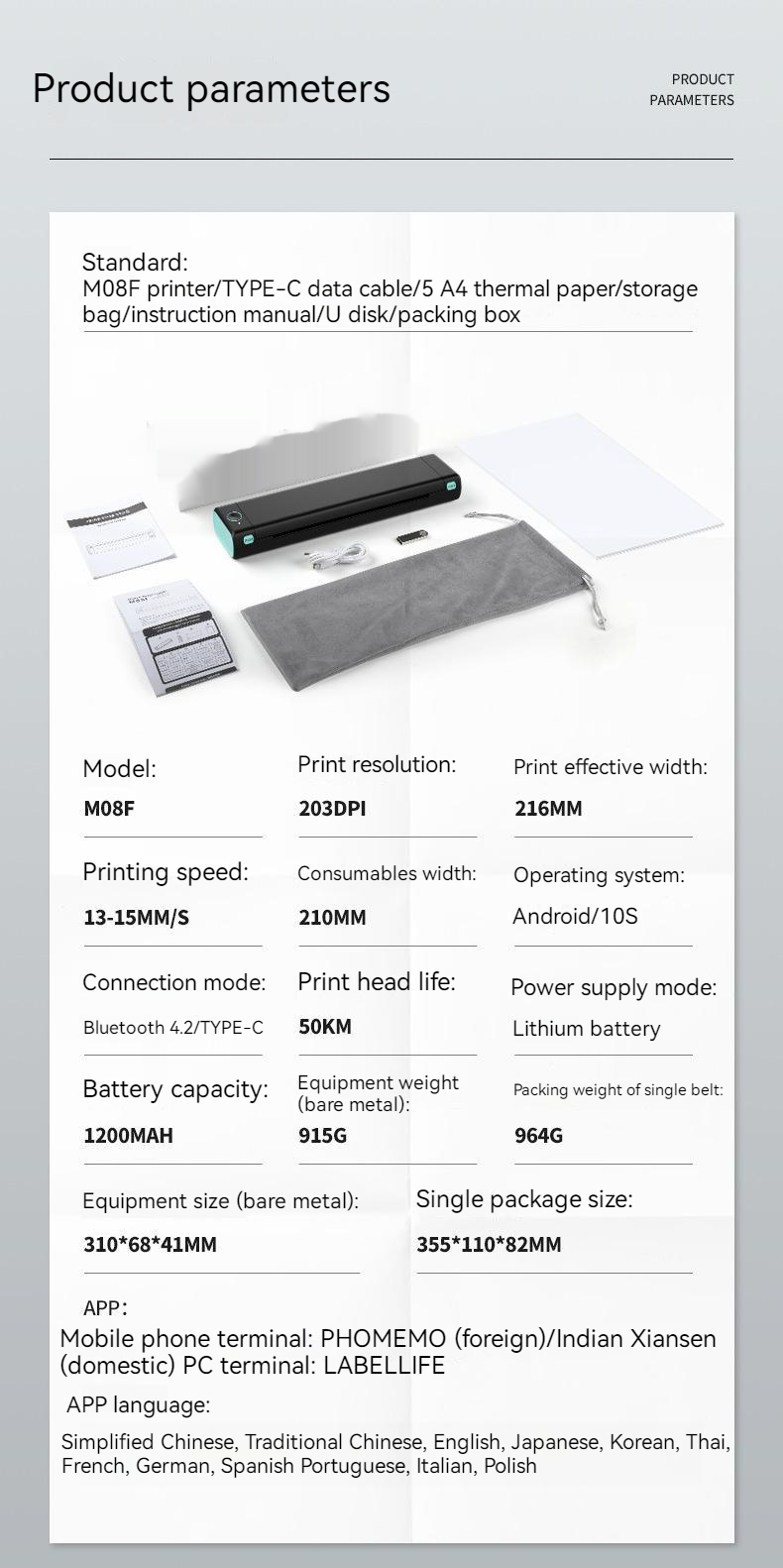 Стандартное оборудование : Принтер MO8F/Кабель для передачи данных/5 листов термобумаги формата А4/сумка для хранения/Руководство/U-диск