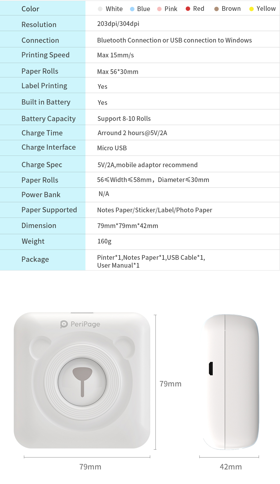 Портативный термопринтер PeriPage 304dpi для фотографий и этикеток, коричневый, красный, желтый, A6