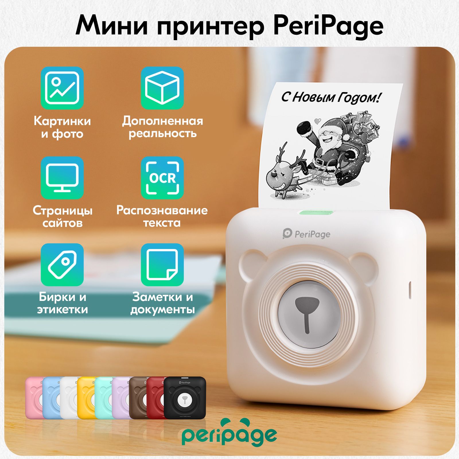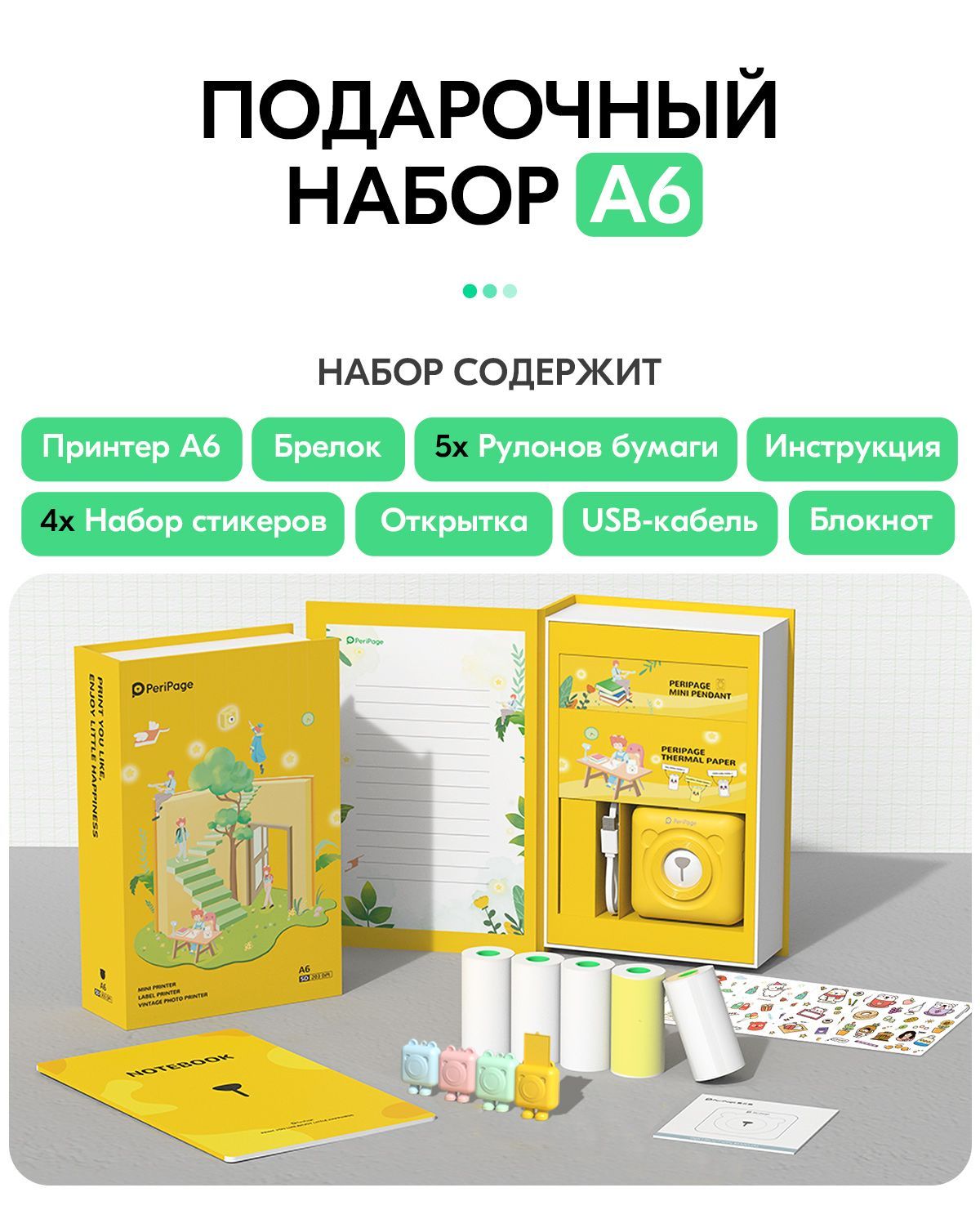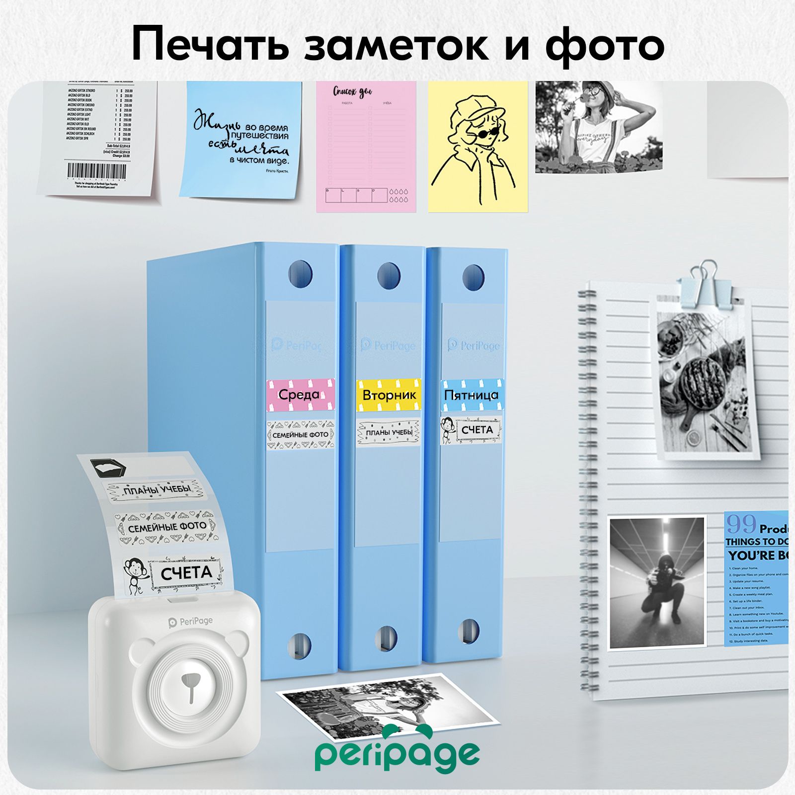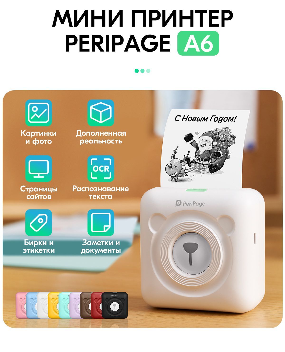 Портативный термопринтер PeriPage A6, мини принтер для телефона, мобильный карманный, для печати этикеток, наклеек, стикеров и заметок, разрешение 304 dpi, белый