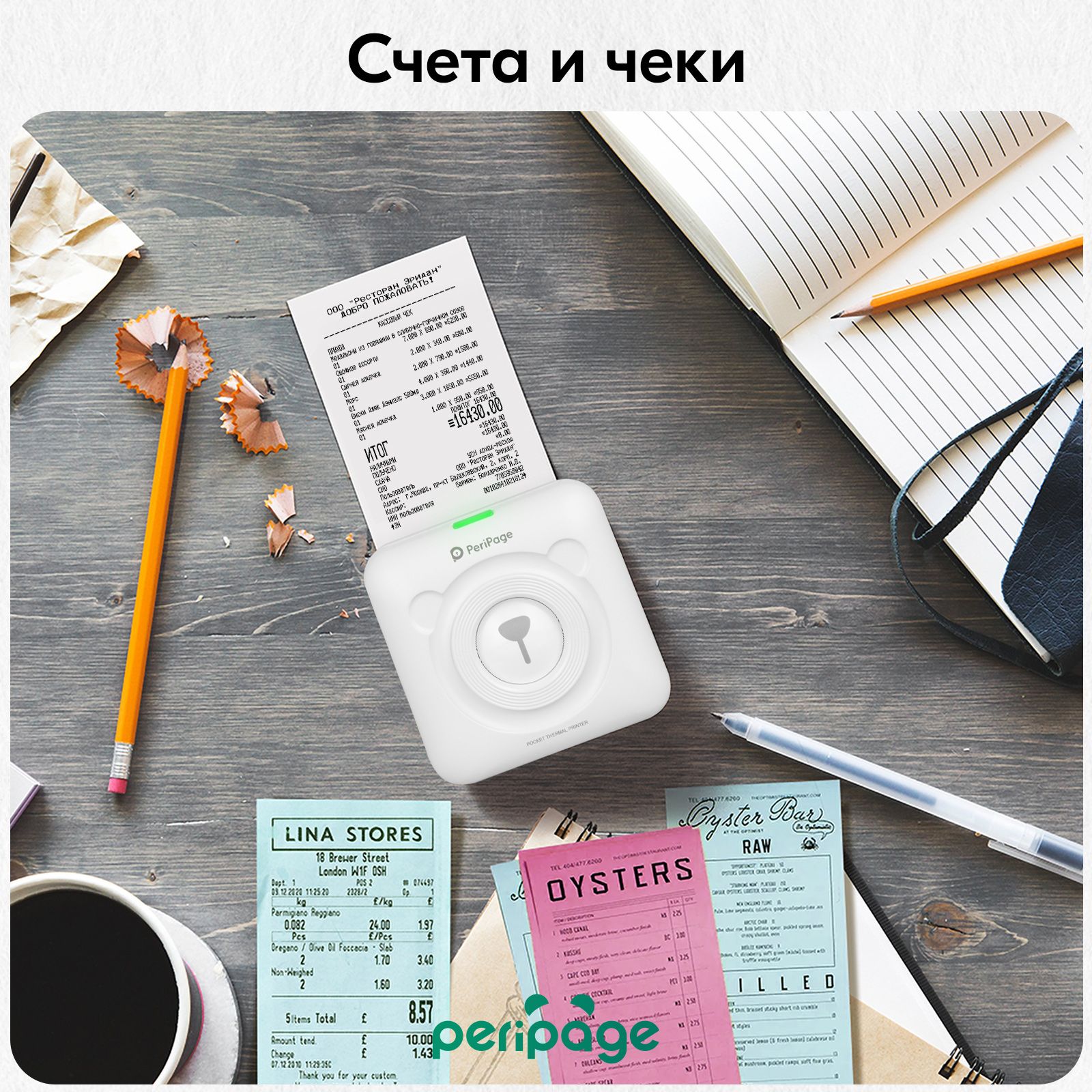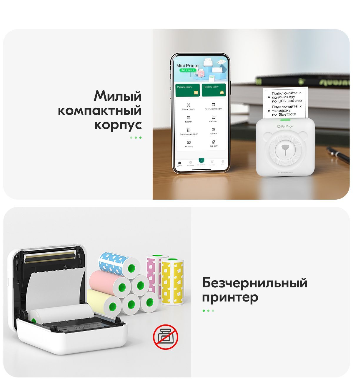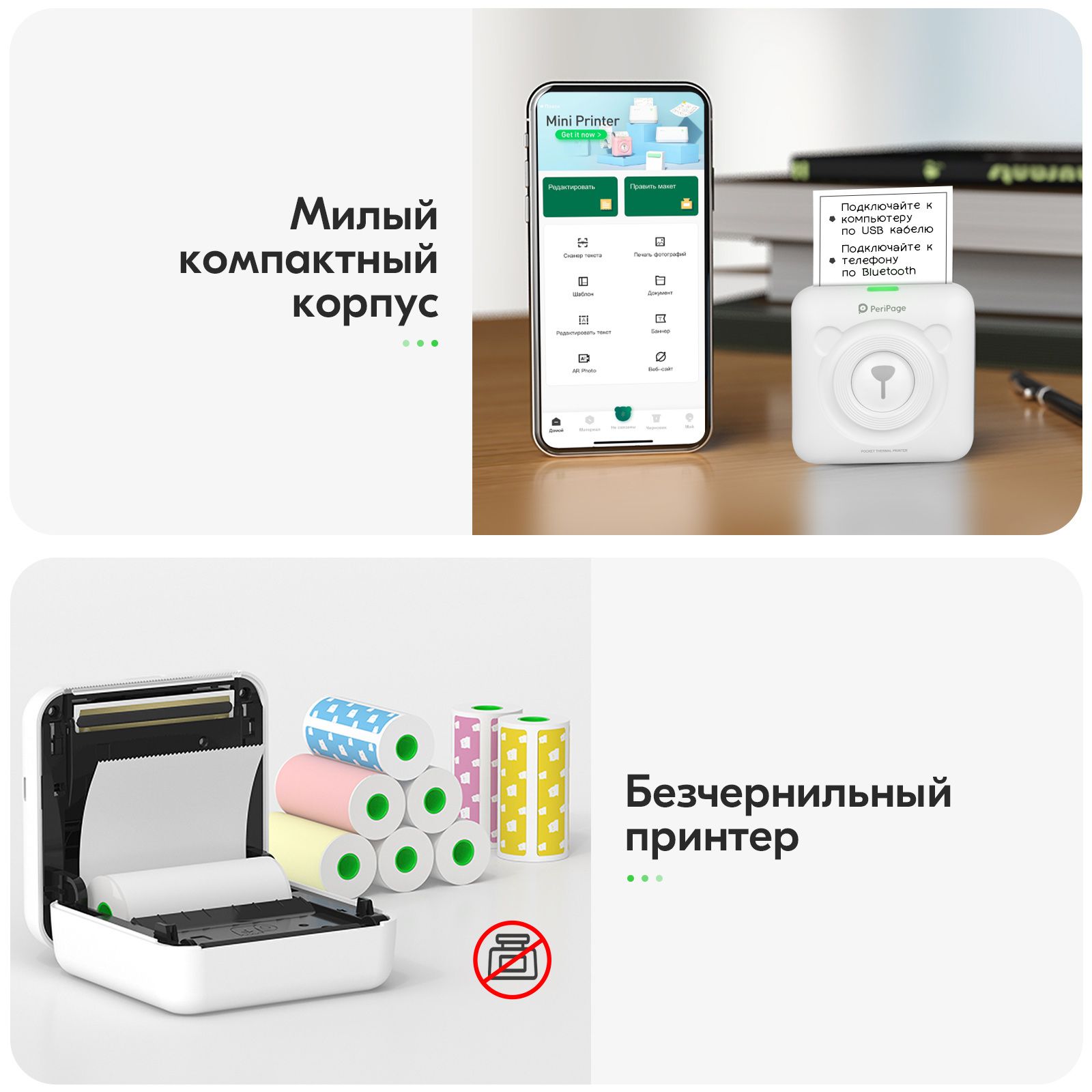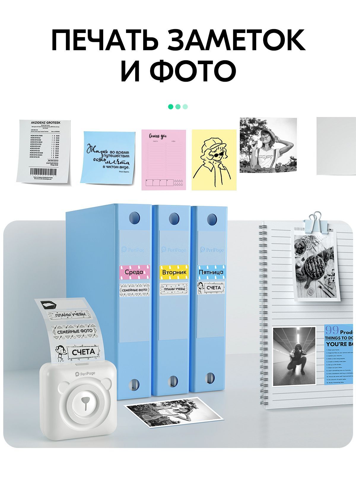 Портативный термопринтер PeriPage A6, мини принтер для телефона, мобильный карманный, для печати этикеток, наклеек, стикеров и заметок, разрешение 304 dpi, белый