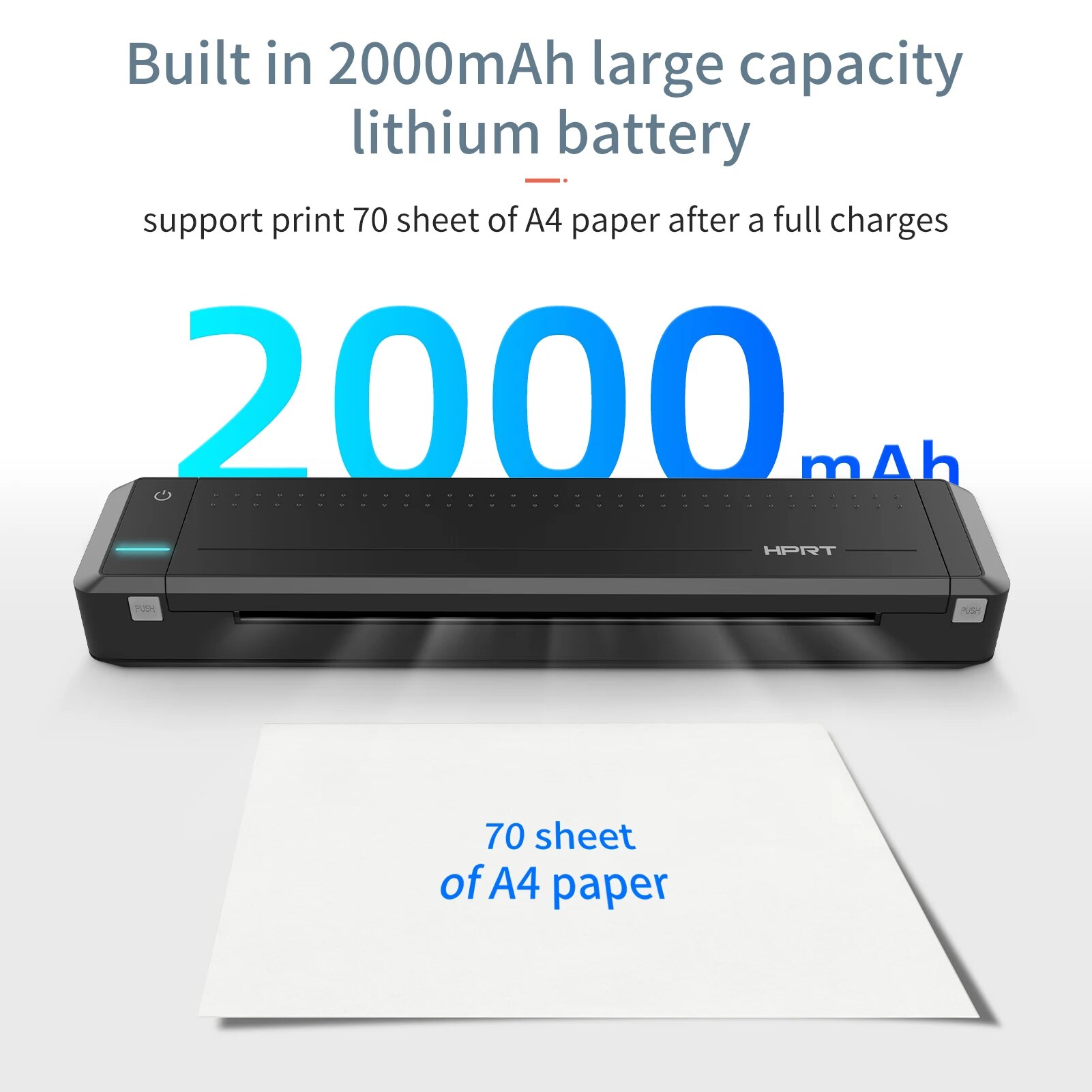 Мощный и долговечный-встроенный литиевый аккумулятор большой емкости 2000 мАч, поддерживает печать 70 листов бумаги формата А4 после полной зарядки; Каждый рулон ленты может печатать 45 листов формата А4 без частой замены. Печатающая головка премиум-класса может работать до 50 км (около 160 тысяч бумаги формата А4).