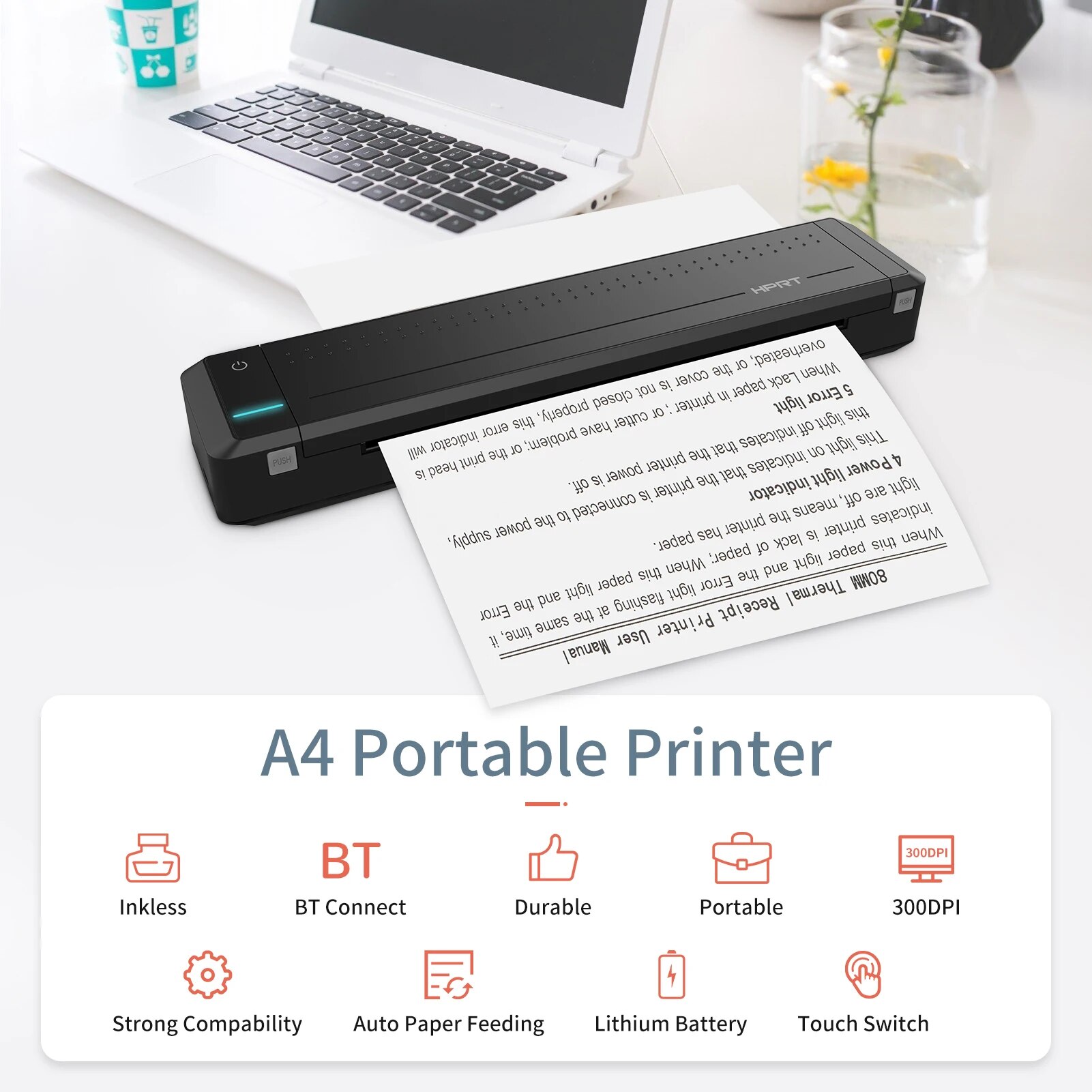 Портативный термотрансферный принтер HPRT MT800 A4, беспроводной и USB-подключение к мобильному компьютеру для офиса и школы с ленточным рулоном