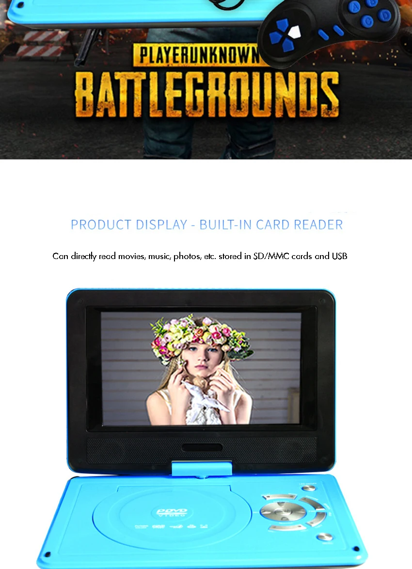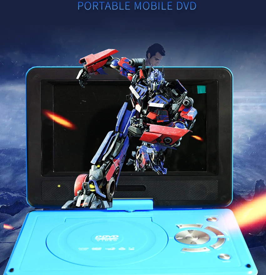 Портативный ТВ DVD-плеер dvd vcd CD видеоплеер для дома автомобильный перезаряжаемый SD-карта USB прямой воспроизведение поворотный экран