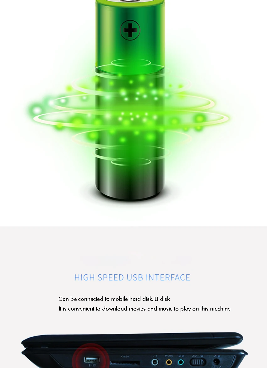 15. Built-in rechargeable lithium battery with large capacity. Convenient to use outdoors, it can play continuously for about 1 hour, and the playing time may vary due to different operations. Equipped with on-board power supply for convenient use in the car