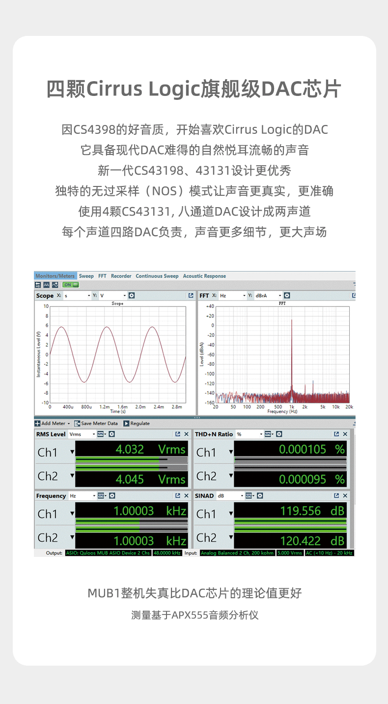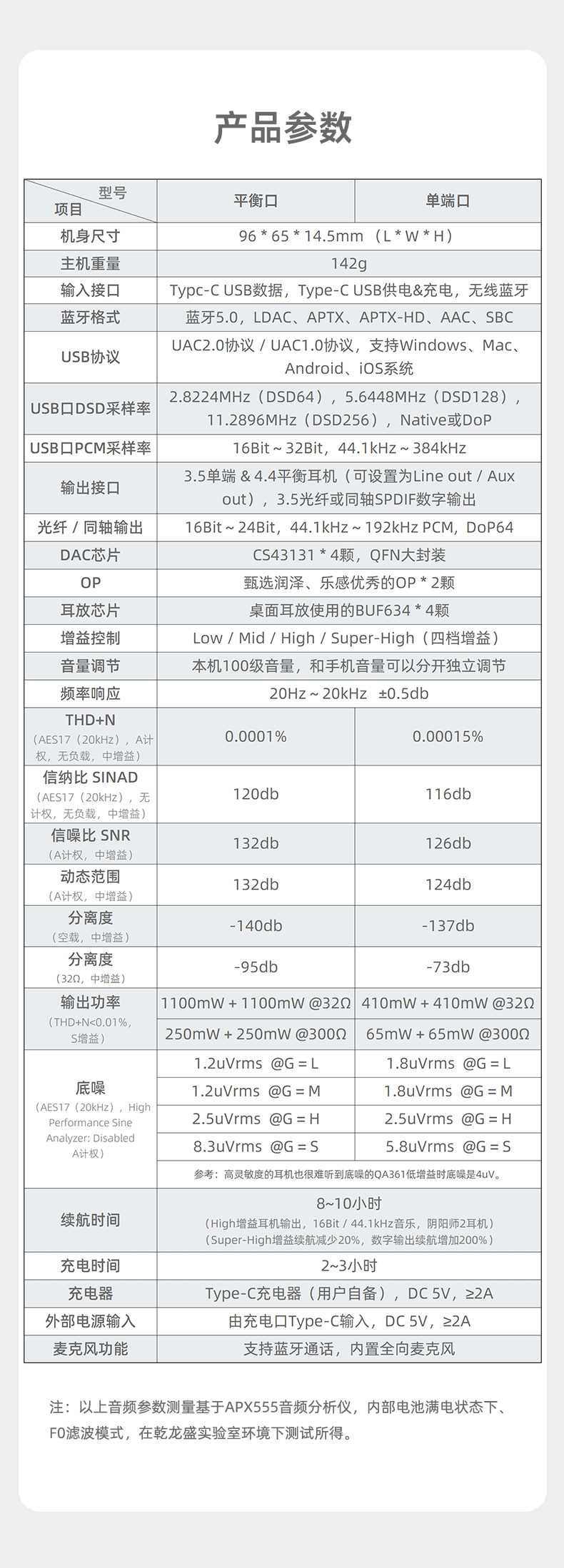 • Чип ЦАП: CS43131 * 4 шт., Большой пакет QFN