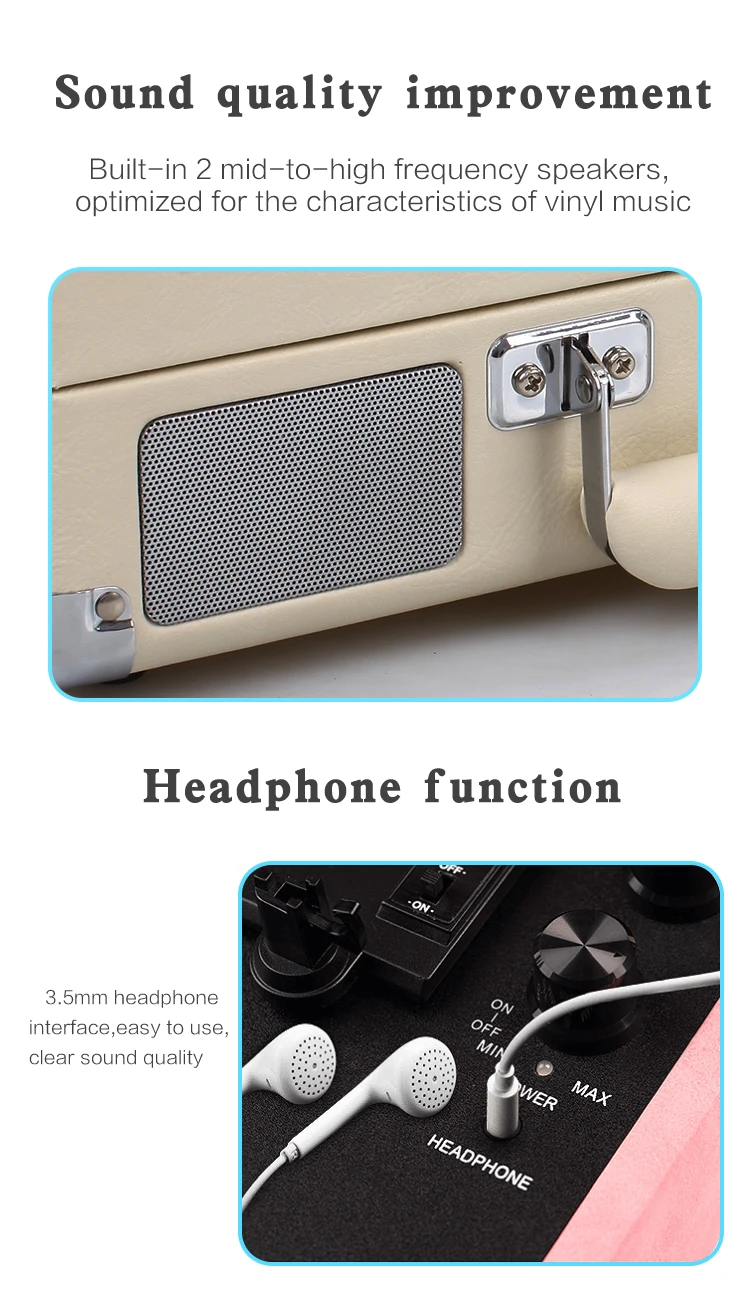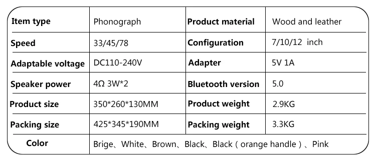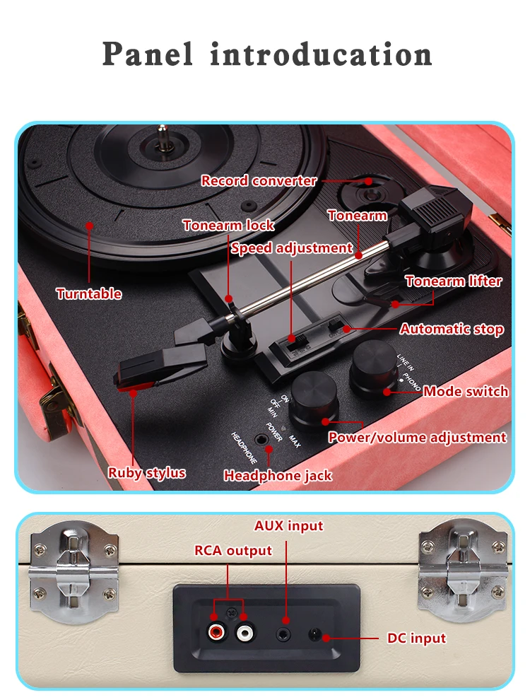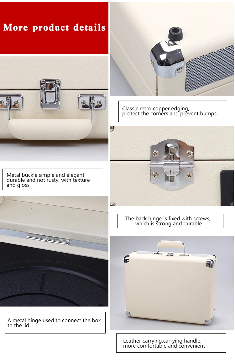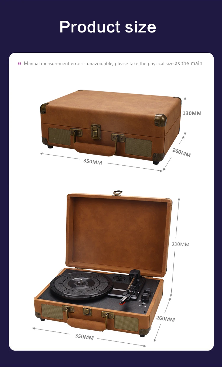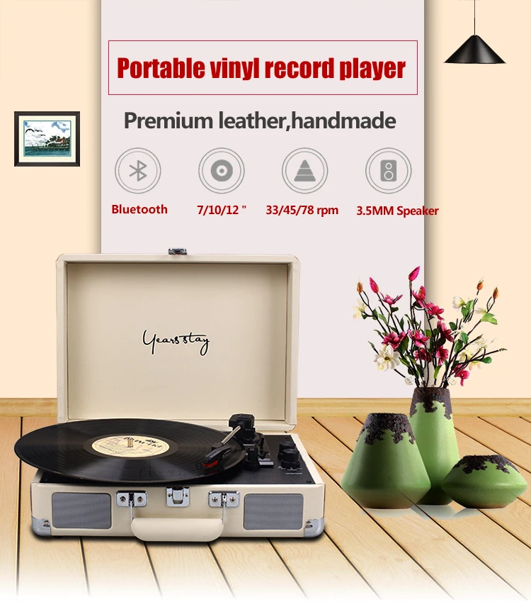 Портативный винтажный проигрыватель виниловых пластинок 33/45/78 об/мин