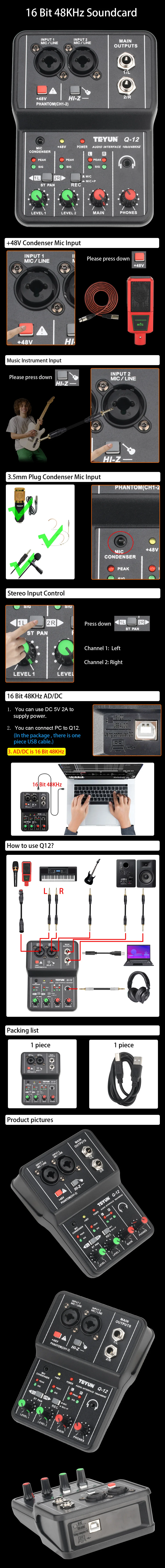 Портативный внешний мини-миксер звуковой карты с аудиоинтерфейсом, 48 В, компьютерная гитара, студийное оборудование