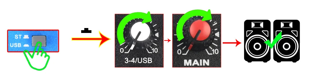 2) Поверните ручку 3-4/USB, отрегулируйте громкость канала до основного выхода.