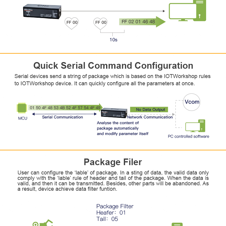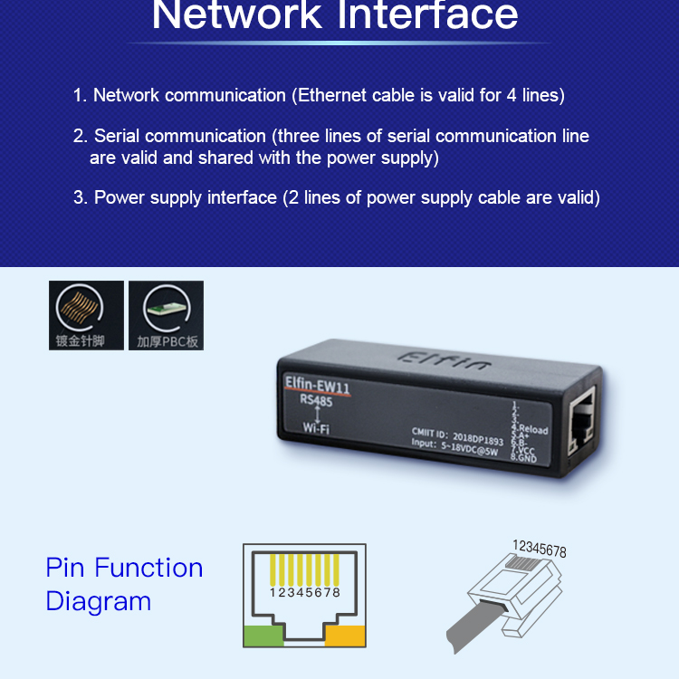 Блок Elfin-EW11A является полным решением для последовательного порта устройства, подключаемого к сети. Это мощное устройство поддерживает надежную и проверенную операционную систему, хранящуюся во флэш-памяти, встроенный веб-сервер, полный стек протоколов TCP/IP и шифрование на основе стандартов (AES).