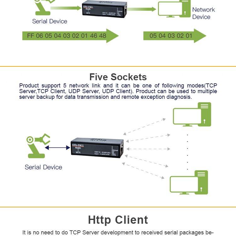 Elfin-EW11 последовательный сервер для передачи данных через Wi-Fi, что делает преобразование данных очень простым.
