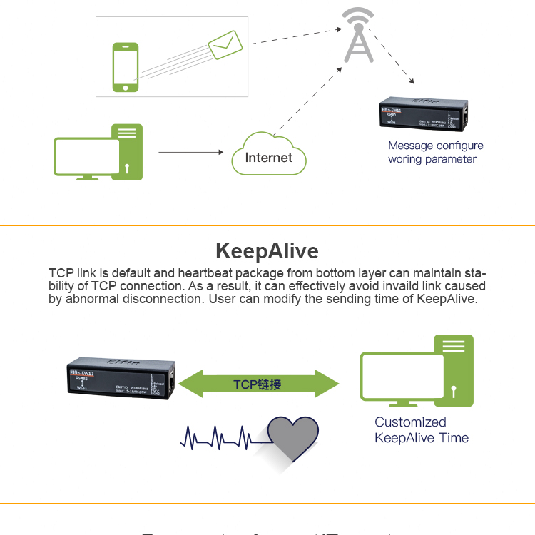 • Поддержка RS485 для преобразования Ethernet/Wi-Fi, последовательная скорость до 460800 bps